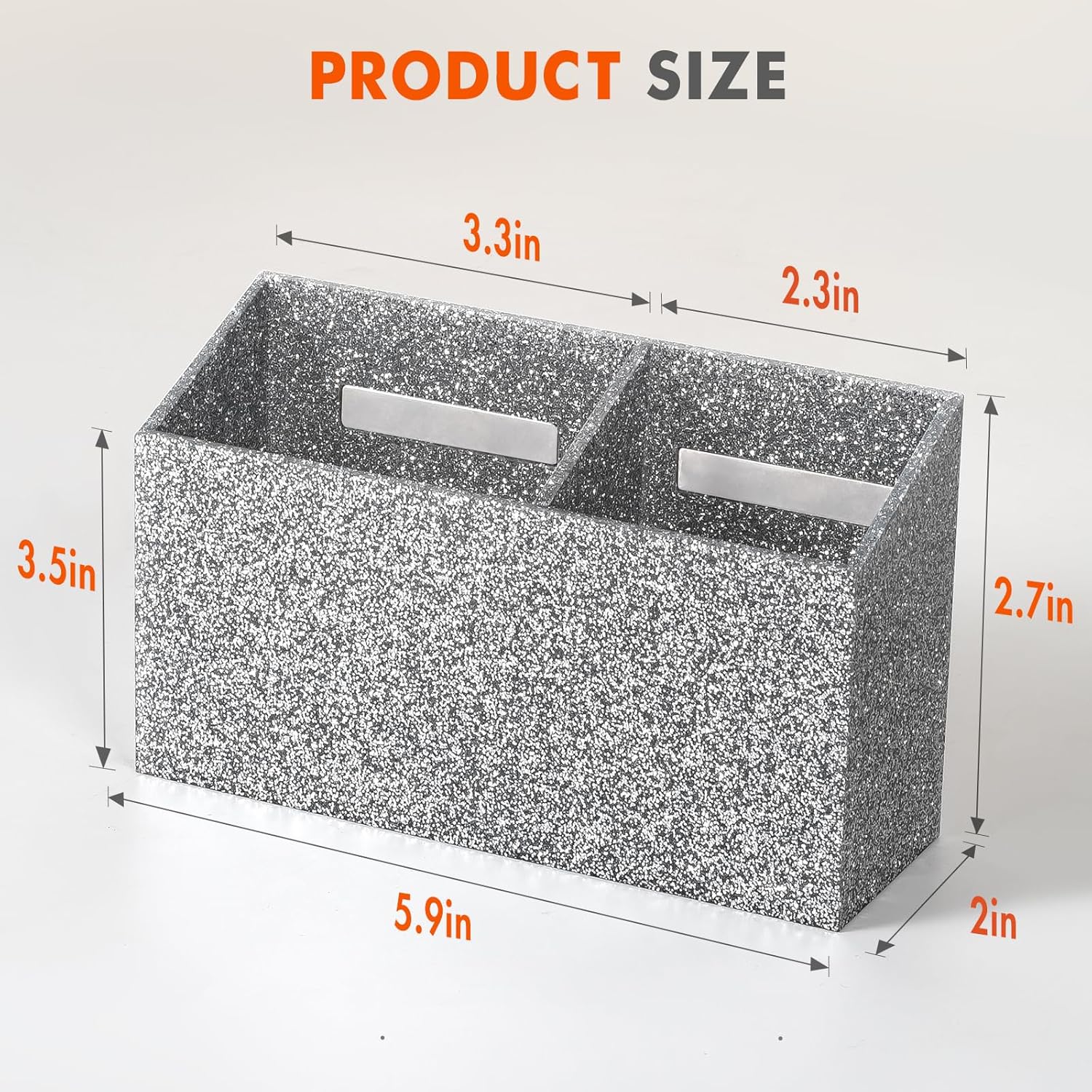 - 【MULTIPLE COMPARTMENTS】- This Dry Erase Marker Holder has two compartments that can be placed separately from the dry erase eraser. You can also sort pens, rulers, remote controls, Sunglasses, etc. Dimensions: 5.9 x 3.5 x 2 inches