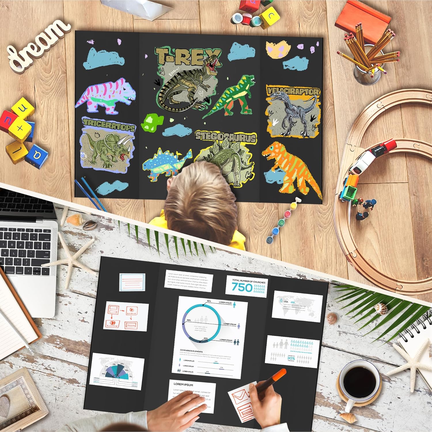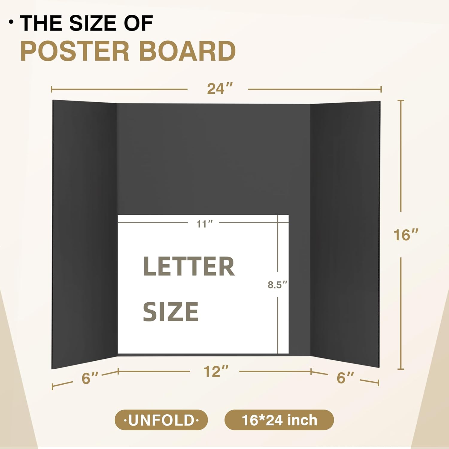 Chell Mini Size Trifold Poster Board, 16" x 24", Small Corrugated Project Boards, Black, 2 Pack
