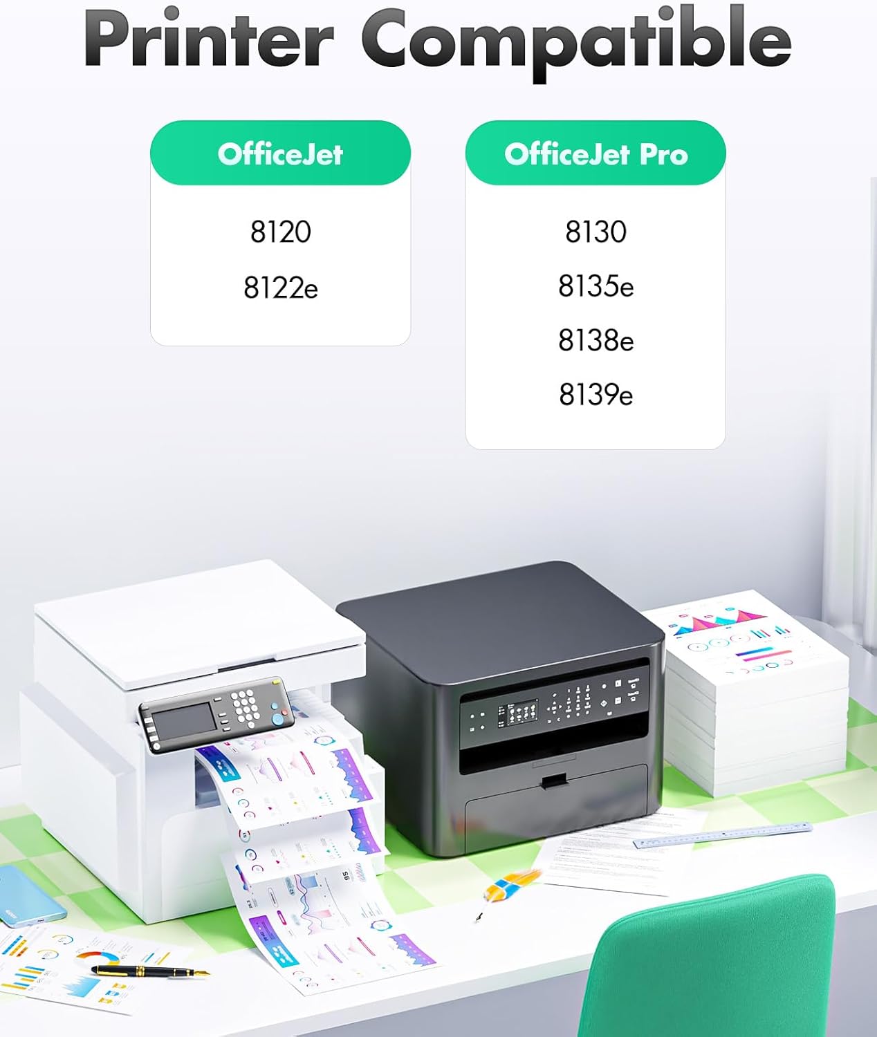 - Compatible Printer Models : Compatible with HP OfficeJet 8122e, HP OfficeJet Pro 8135e, 8138e, 8139e Printer