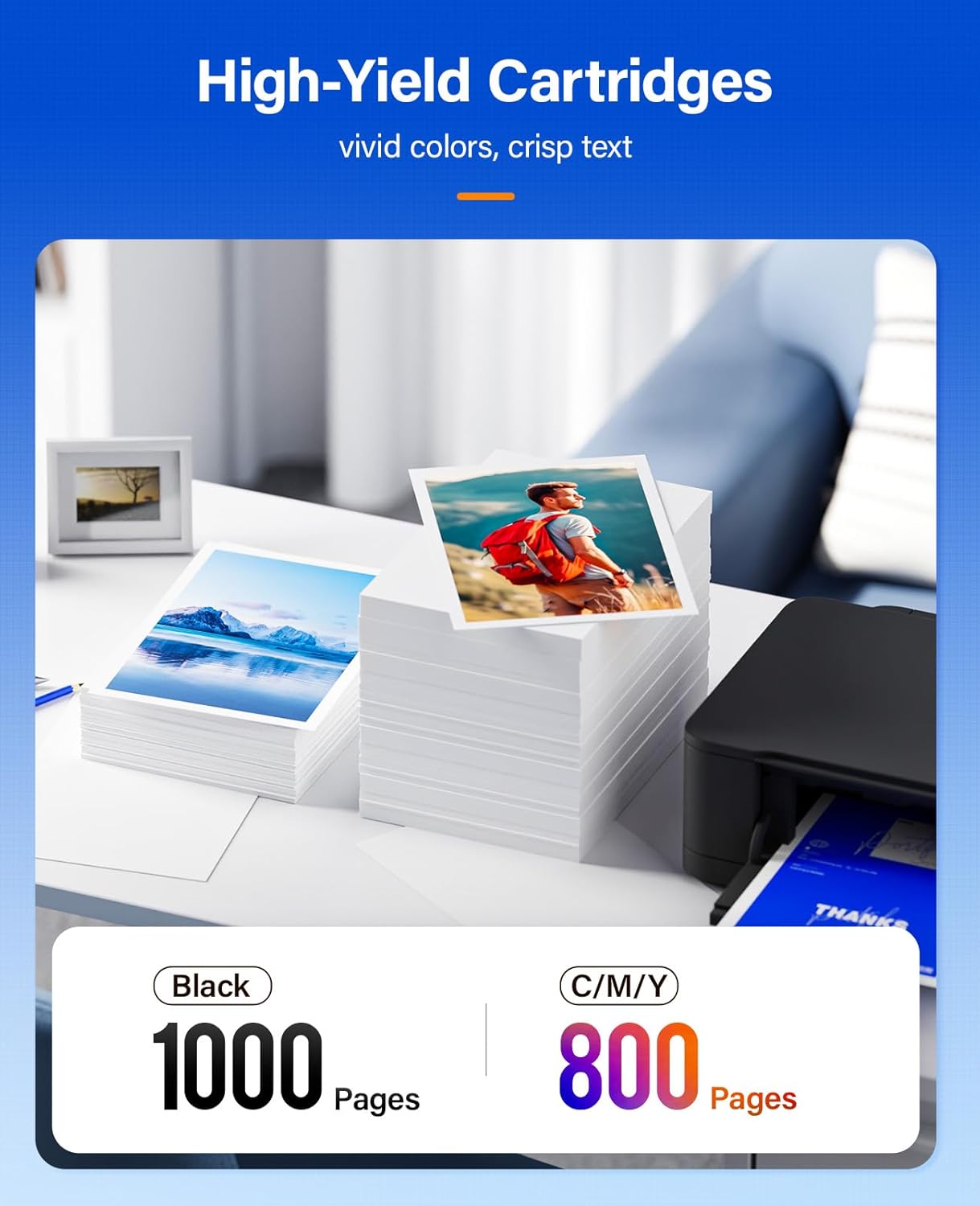 - High Page Yield: 1,000 pages for Black & 800 pages Color ink cartridge (A4, 5% Coverage), with High Yield Version hp 923e