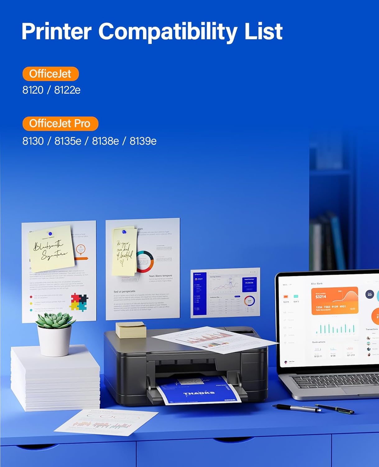 - Compatible Printer: Compatible for HP OfficeJet 8120 8122e 8123; HP OfficeJet Pro 8130 8135e, 8138e, 8139e Printer series.