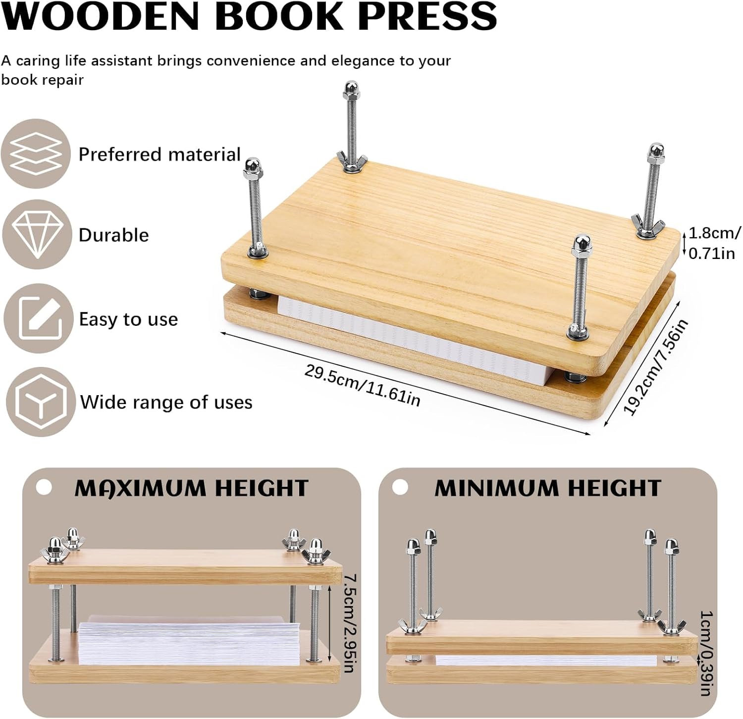- What's Included: The book press bookbinding measures 7.9*11.6, which meets most size requirements and can accommodate books of various sizes. Comes with a graphic instruction manual to quickly understand installation and use