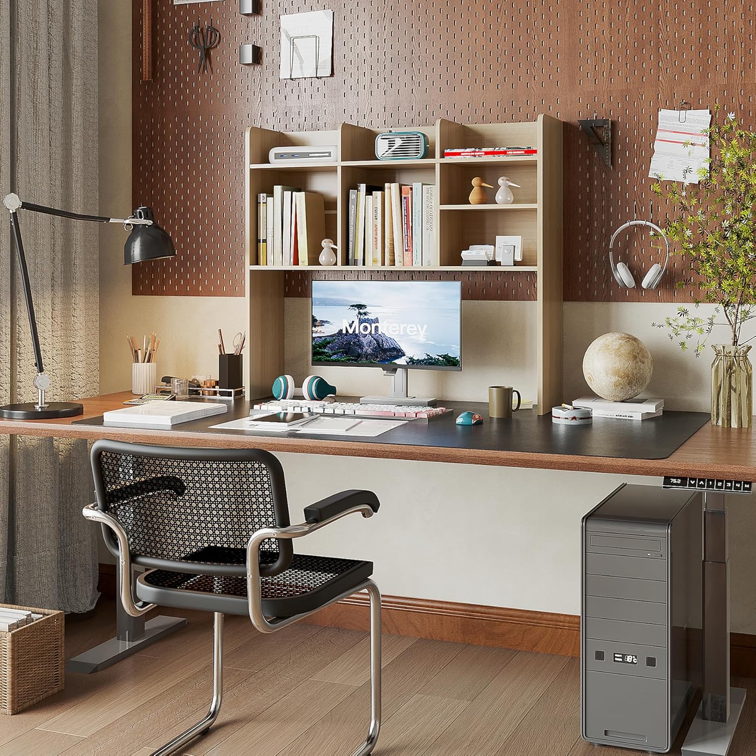 ChooChoo Desktop Bookshelf, Wood Desk Hutch Organizer with 7 Shelves for Computer Desk, Desktop Shelf Bookshelf Storage for College Dorm Office Home, Natural