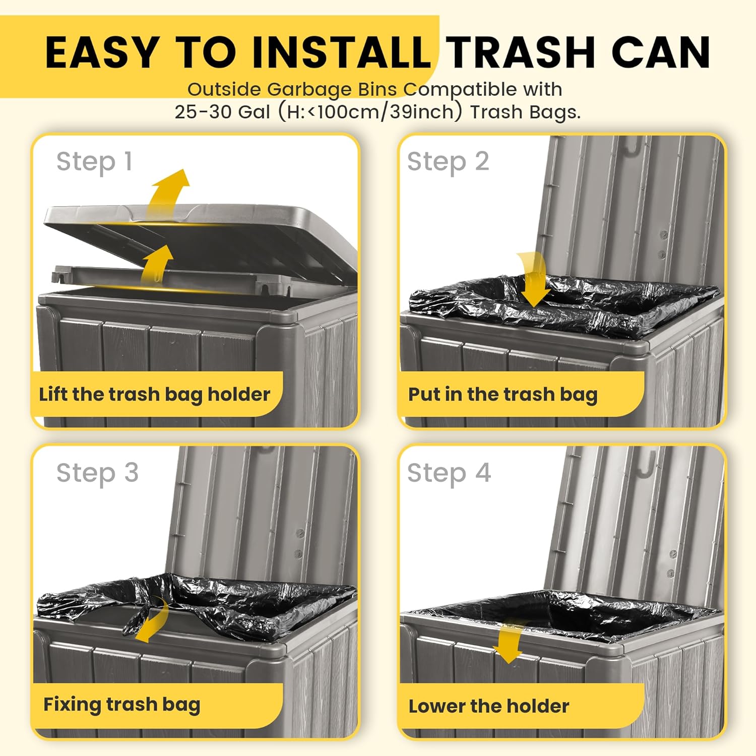 - Quick Install - This outdoor trash bin comes with a detailed user manual. No screws or tools required, just snap the panels together and the installation can be completed in about 10 minutes.