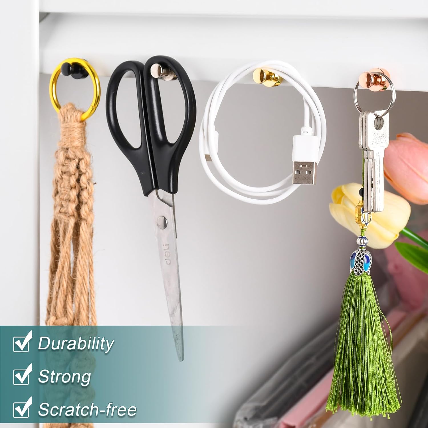 - 【4 DIFFERENT COLOR】Total of 50 pcs small magnet, 4 different color rare earth magnets strong included silver x 15pcs, black x 15pcs, gold x 10pcs and rose gold x 10pcs. small push pin magnets strong for your choices. You can use fridge magnets in office, tool storage or kitchen tool hanging.