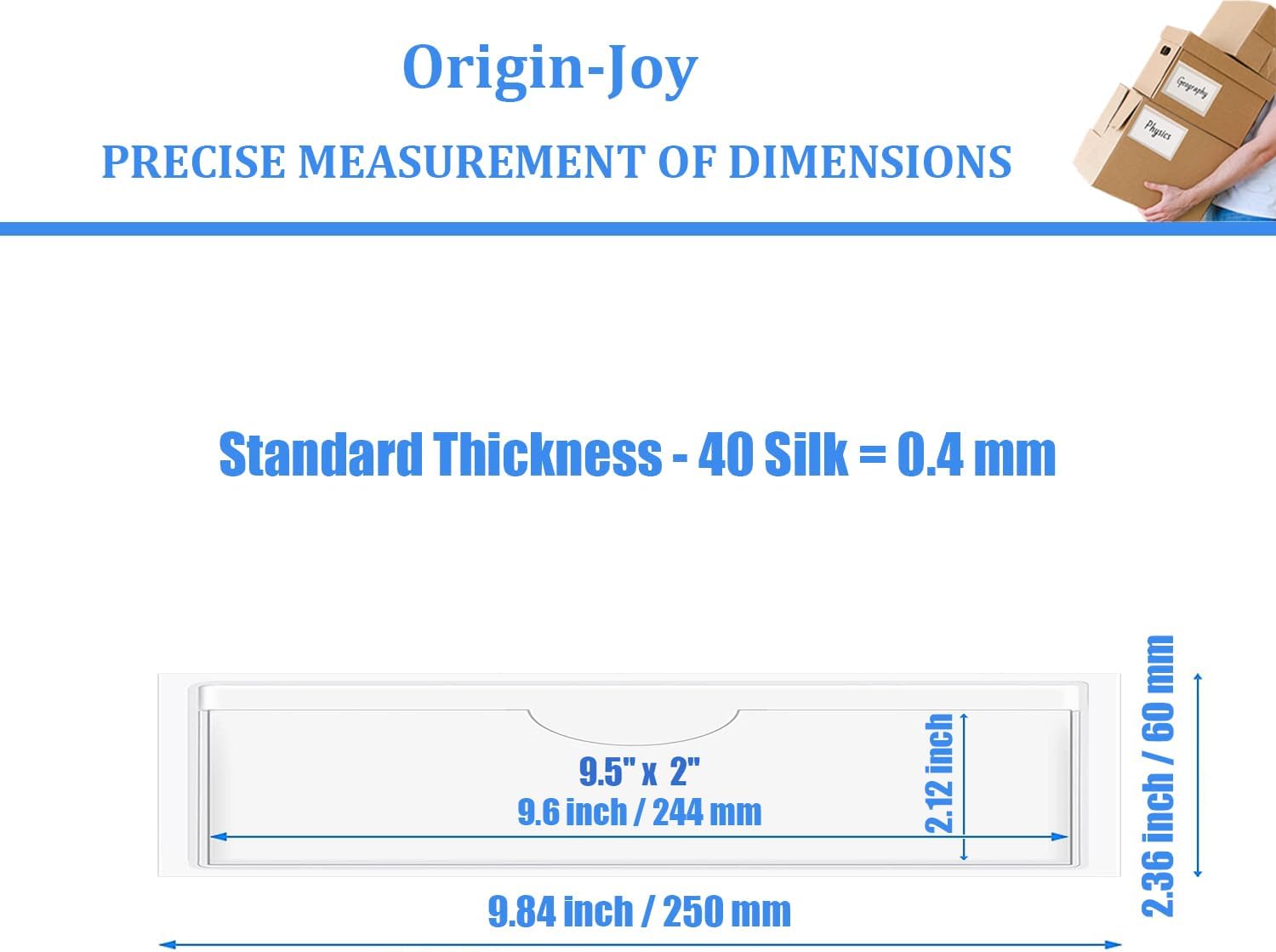 - 【Quality Vinyl Material】Origin-Joy's adhesive index label pockets sleeves are specially customized for customers' common sizes, made from quality vinyl with a self-adhesive backing, the thickness is 40 silk, in keeping lightweight and smooth while having good toughness, not easy to deformation, can be used for a long time.