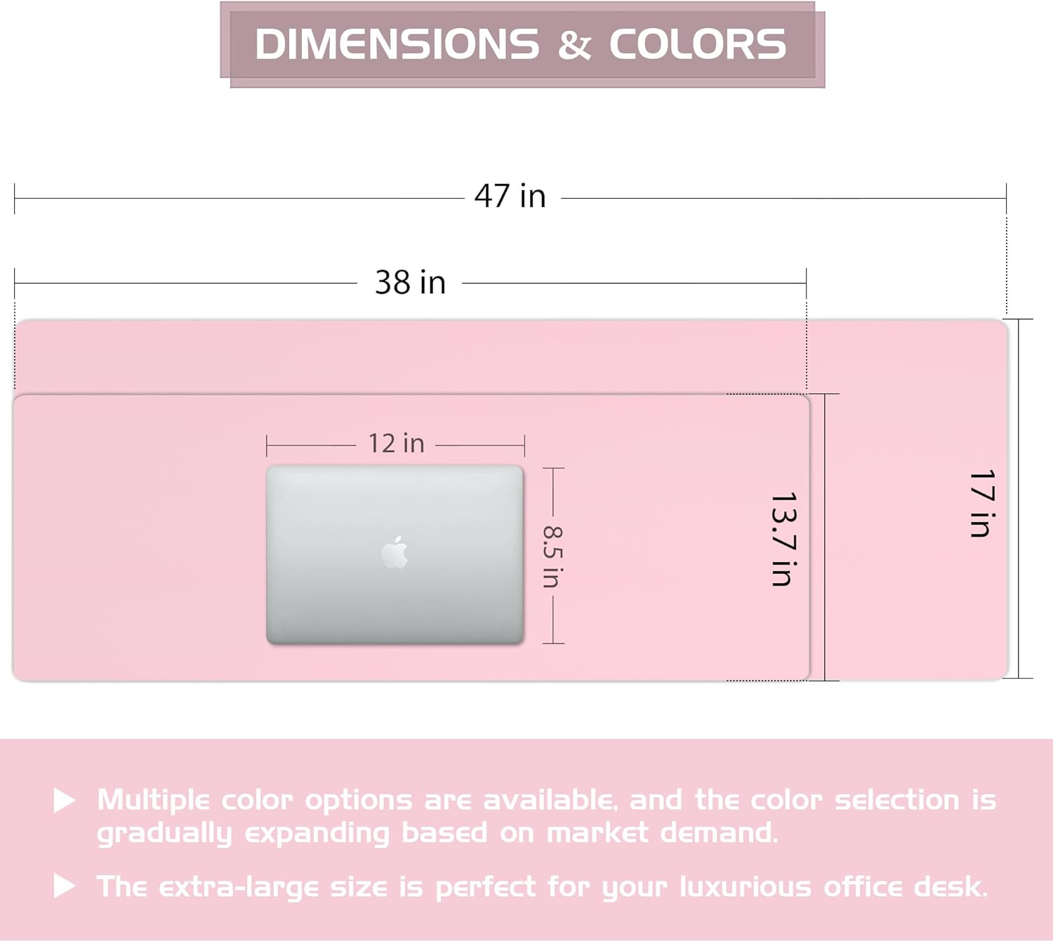- Multifunctional Desk Mat:Discover the versatility of our Multifunctional Desk Pad! Measuring 38" x 13.8" / 47" x 17", it provides ample space for your laptop, mouse, and keyboard. Enjoy its comfortable and smooth surface, perfect for both mouse and writing activities. The non-slip material ensures stability during everyday use, enhancing your overall work experience.
