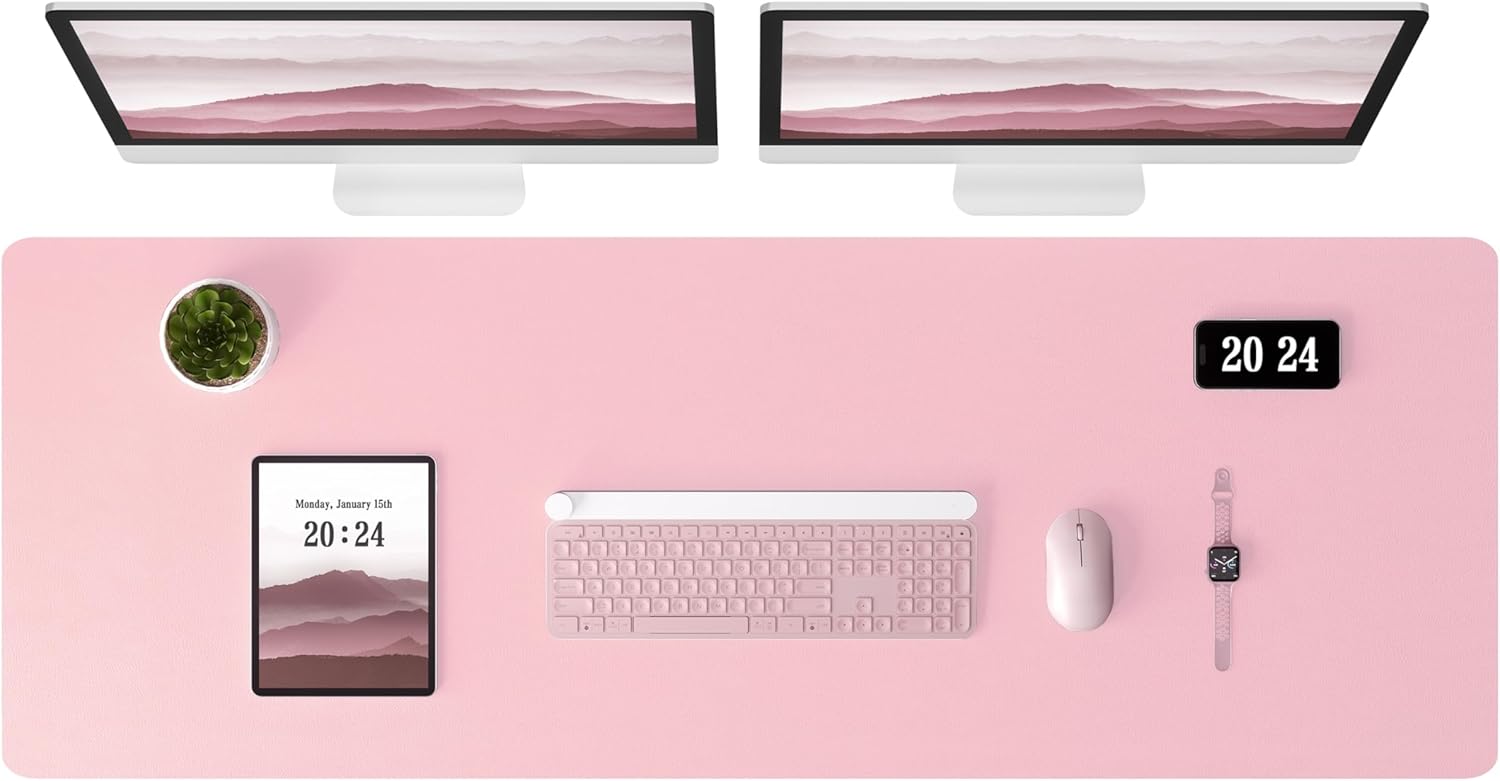 Aothia Leather Desk Pad Protector, Office Desk Mat, Large Mouse Pad, Laptop Desk Pad, Non-Slip PU Leather Desk Blotter, Waterproof Desk Writing Pad for Office and Home (Pink, 47" x 17")