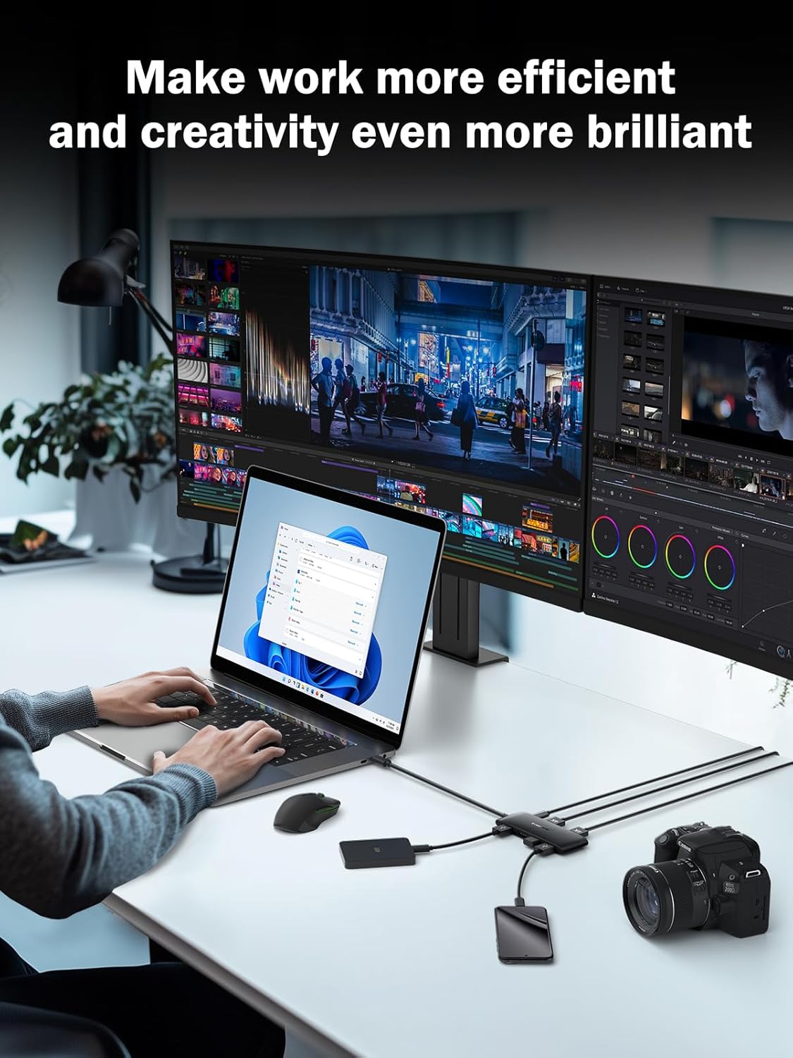 - 【Dual HDMI Ports (4K@60Hz)】: Equipped with two HDMI ports, supporting simultaneous output to two 4K displays with a refresh rate of up to 60Hz, ensuring clear and smooth display performance, ideal for office work, multitasking, and high-definition video playback