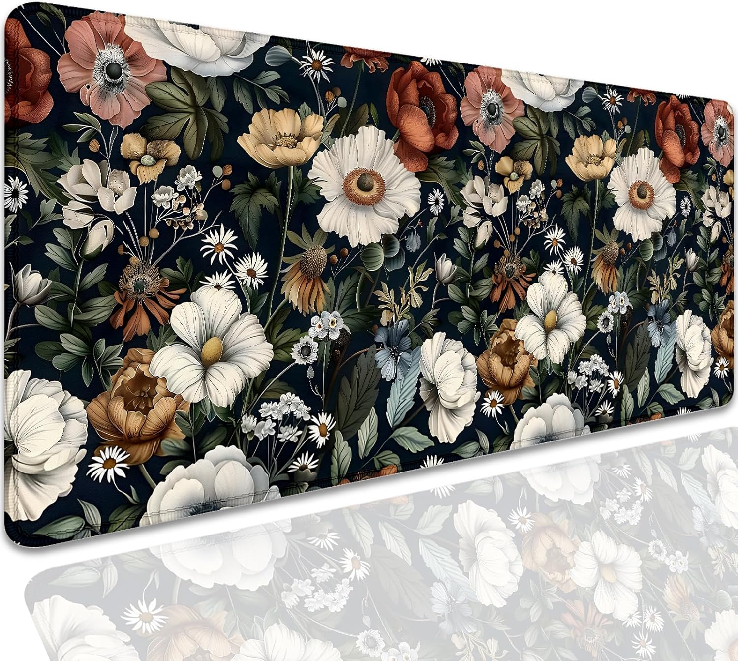 Colorful Flowers Desk Pad Mouse Pad,Daisy Floral Mouse Mat with Stitched Edges,Non-Slip Rubber Base Mousepad for Office PC Keyboard Laptop and Home Work Desk Mat(27.5X11.8 in)
