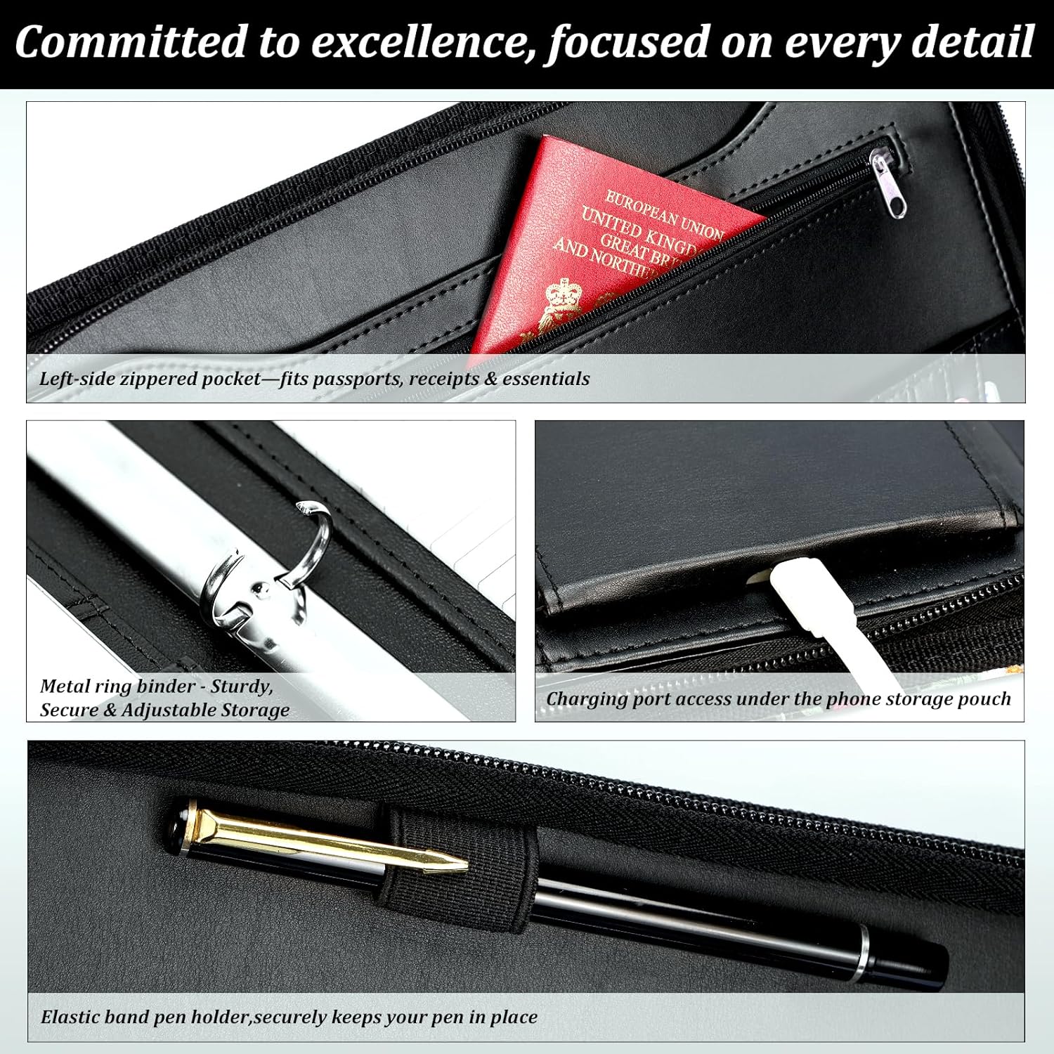 • EFFORTLESS ORGANIZATION WITH 3-RING BINDER: Stay organized with the built-in 3-ring binder, pen holder, phone pocket, and card slots. This leather Padfolio is designed for efficient file management and easy access during meetings or business trips