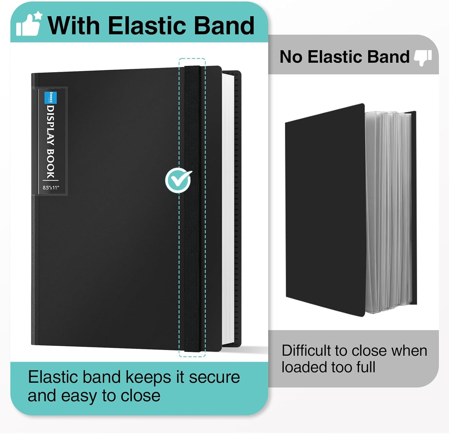 Sooez 72 Pocket Binder with Plastic Sleeves & Elastic Band, Large Capacity 8.5x11 Presentation Book Display 144 Pages, Art Portfolio Document Folder with Clear Sheet Protectors for Office School