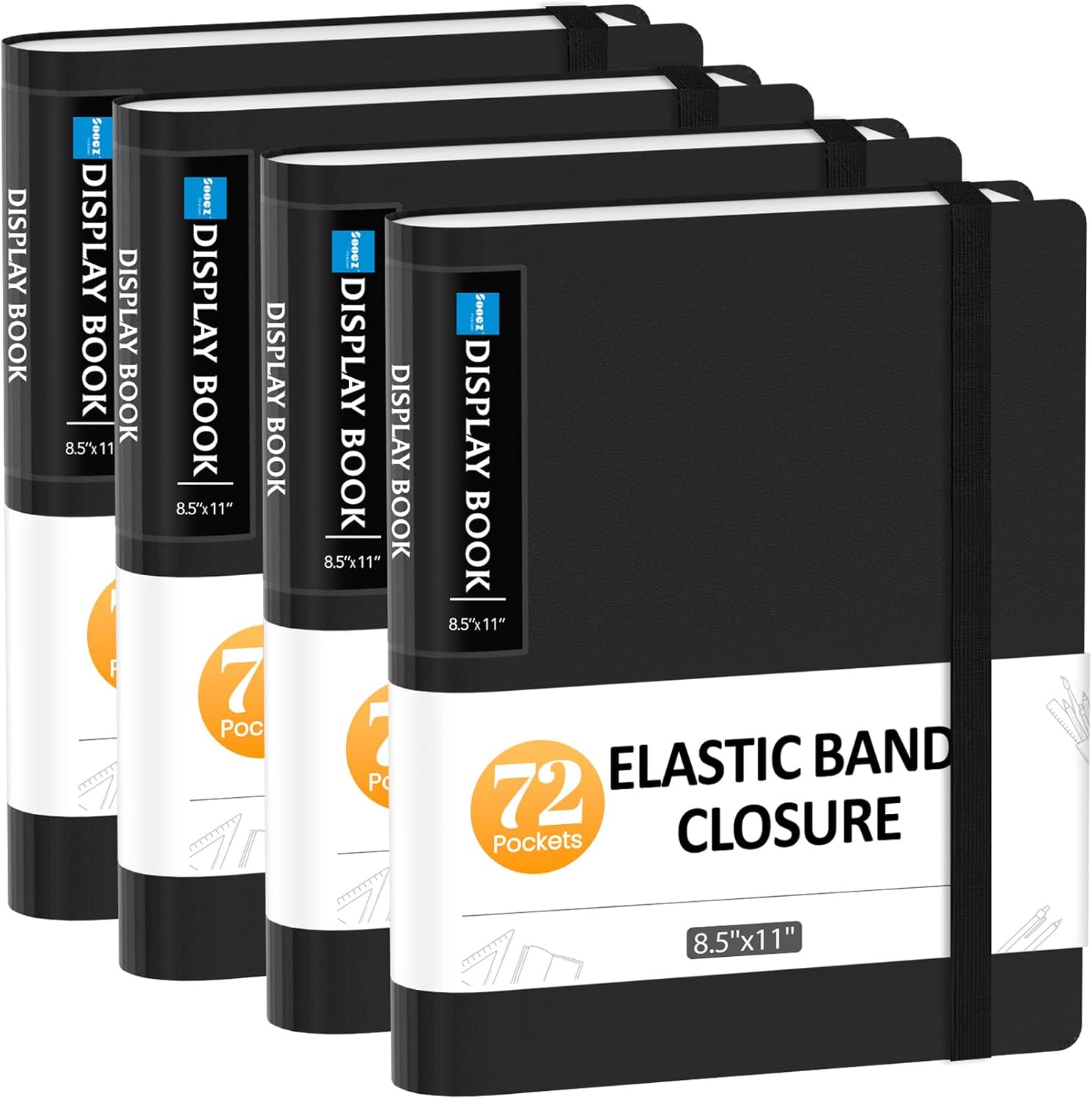 Sooez 4 Pack 72 Pocket Binder with Plastic Sleeves & Elastic Band, Large Capacity 8.5x11 Presentation Book Display 144 Pages, Art Portfolio Document Folder with Clear Sheet Protectors