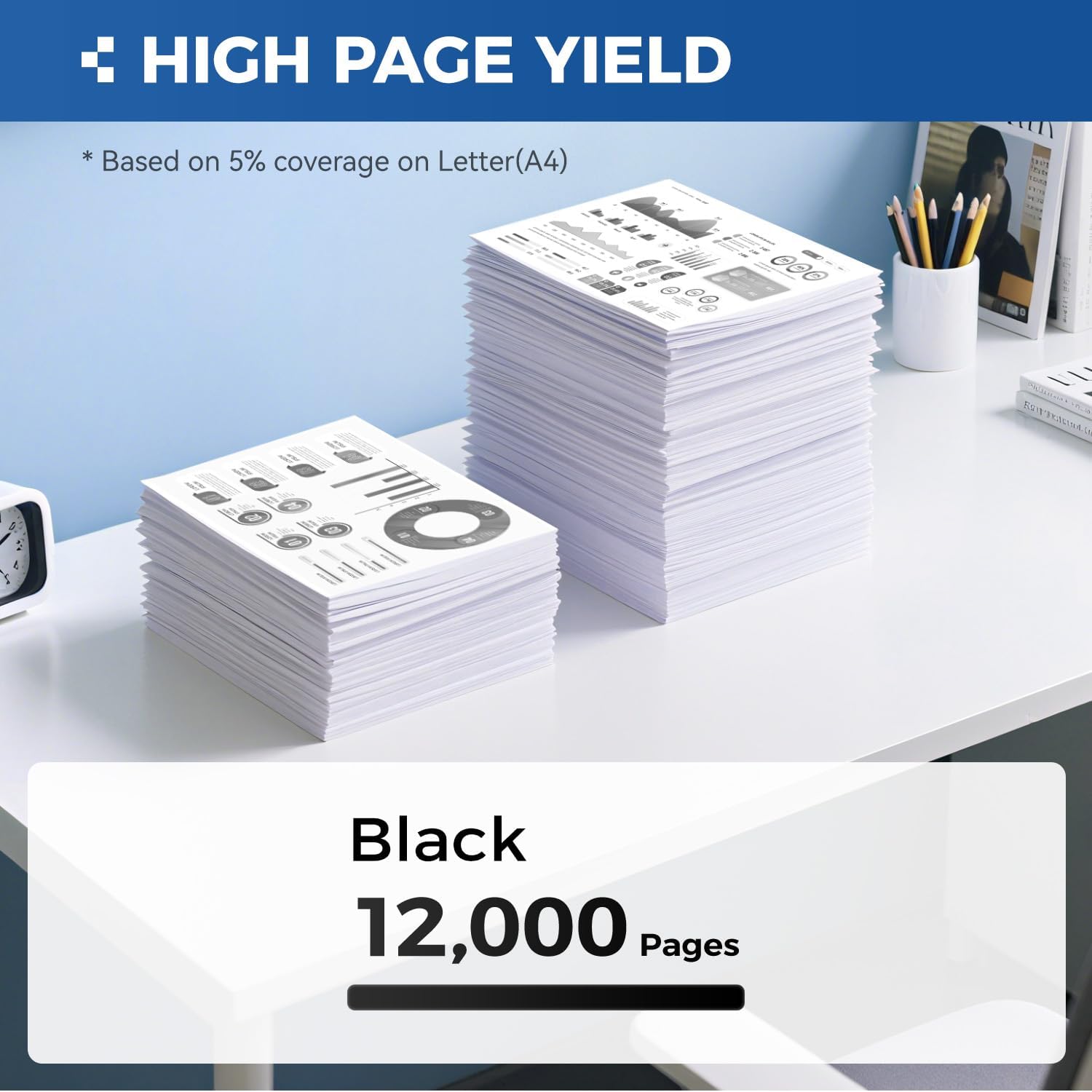 - High Yield Pages: 12,000 pages per black cartridge, up to 24,000 pages with 2 cartridges (A4, 5% coverage)