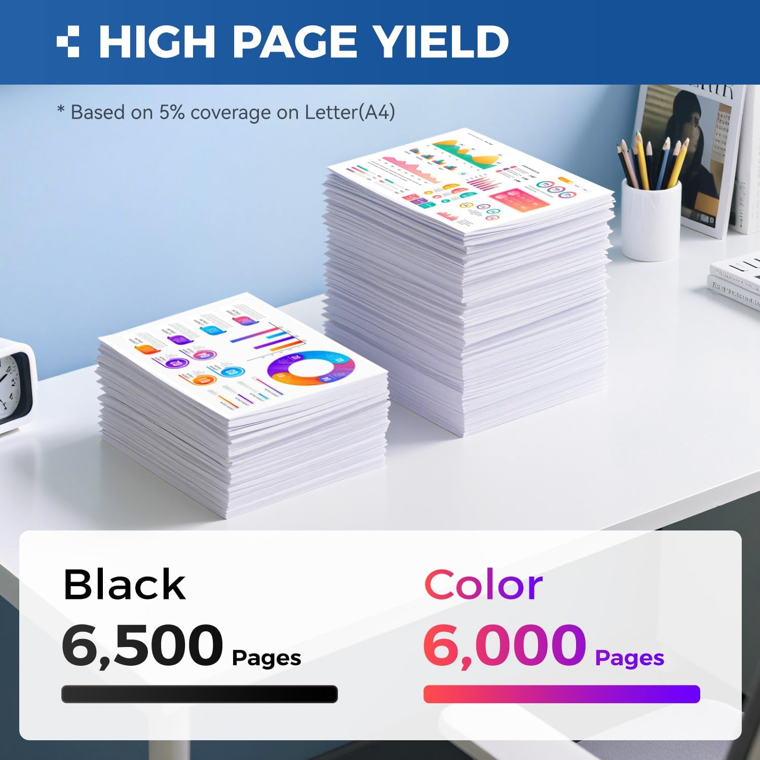 - High Yield Pages: 6,500 pages for Black and 6,500 pages Color toner cartridge (A4, 5% Coverage).