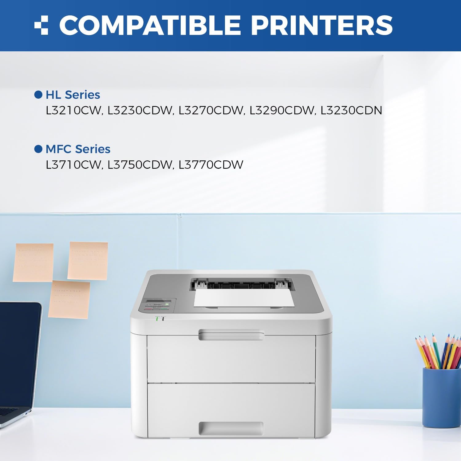 - Compatible Printer: Compatible with Brother HL-L3210CW, HL-L3230CDW, HL-L3270CDW, HL-L3290CDW, HL-L3230CDN, MFC-L3710CW, MFC-L3750CDW, MFC-L3770CDW (Please check that your printer model matches the printer model of this toner cartridge before placing an order)