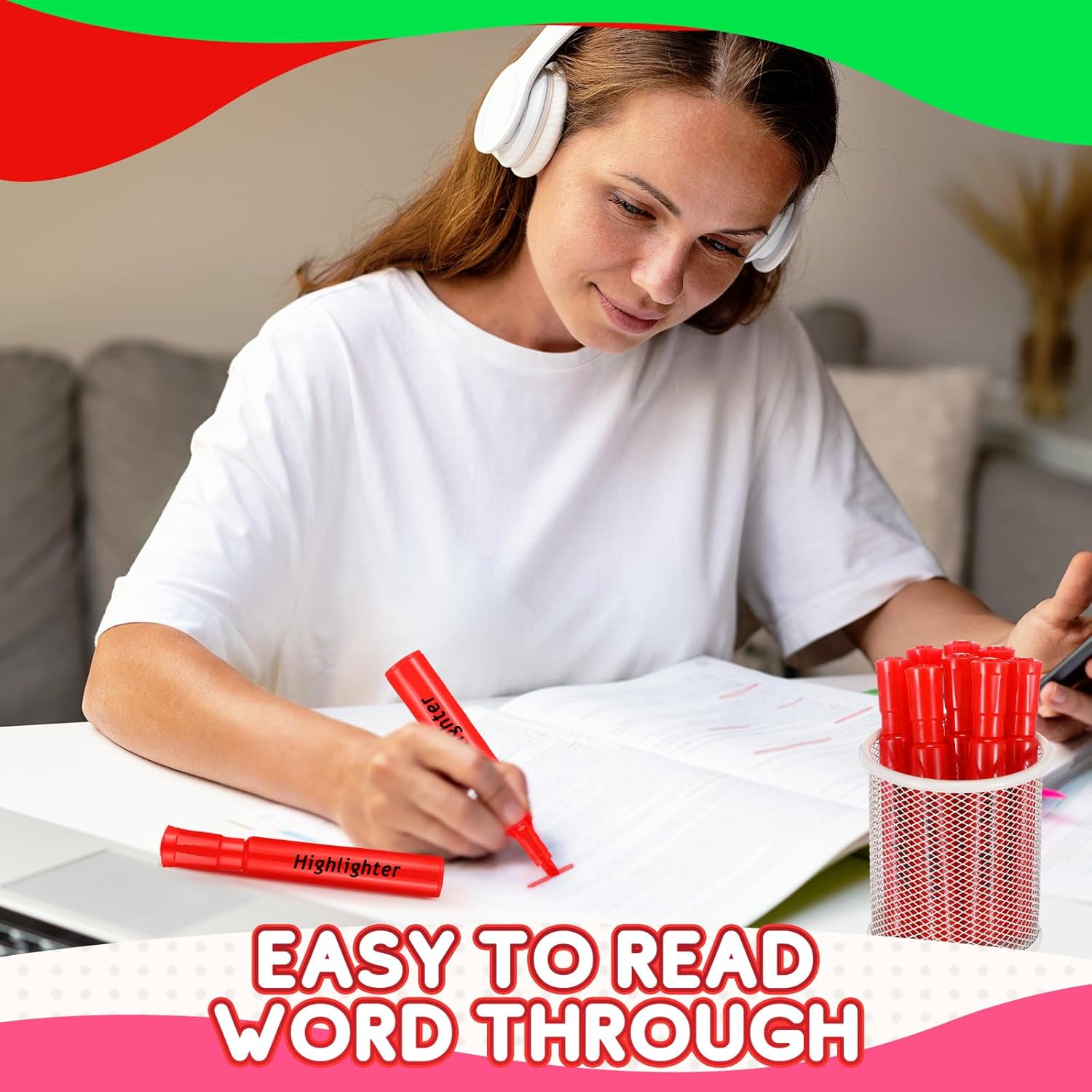 - Fluorescent Color Ink: these chisel tip highlighters have a fluorescent red color; You can also use these highlighters to complement different occasions and have a good time, for example, you can use the bright color highlighter to accent important information