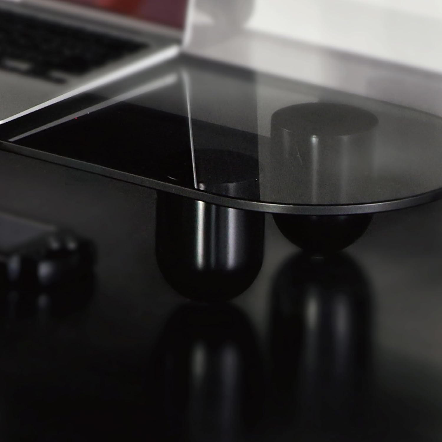 - 【Heavy-Duty Stability】Engineered with tempered glass and solid wood rounded legs that uniformly distribute weight. Safely supports 44 lbs - ideal for dual monitor riser for desk configurations.