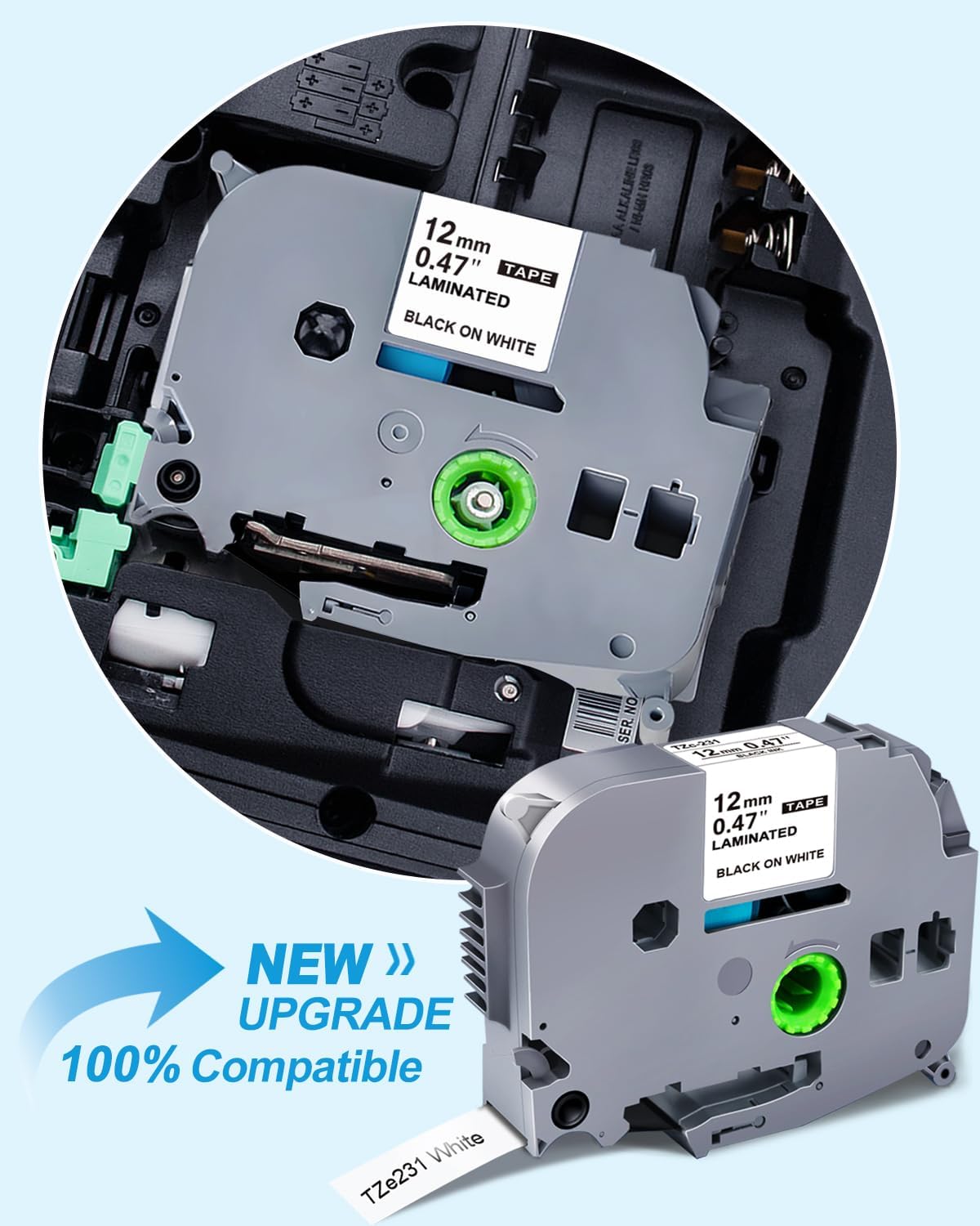 - 【Built to Last】12mm TZe-231 replacement for Brother P-Touch label makers tape. Its strong adhesive label tape pv-resustant, water resistant, abrasion resistant, corrosion-resistant, temperature resistance, Fade resistant, chemical resistant. high-performance labeling solution designed for long-lasting use in demanding environments