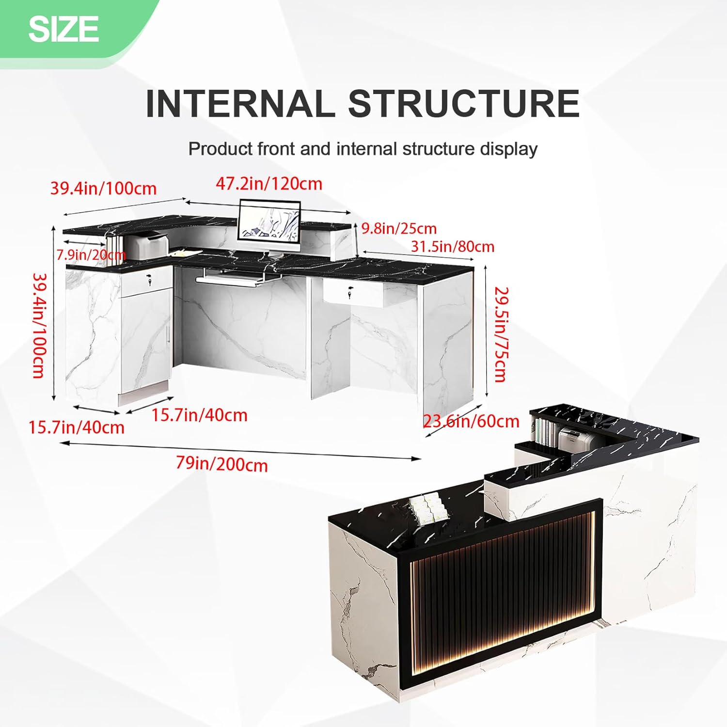 - Durability - The salon reception desk check in desk is made of wood multilayer board with a wear-resistant smooth surface, smooth guide rails and silent hinges to ensure its practicality, sturdiness and stability for long-term use and easy cleaning.