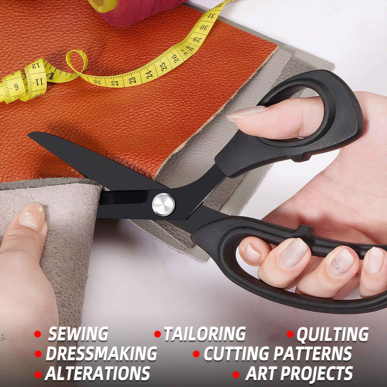 • 【Wide rang of use】 Whether it's denim, leather, tufting, fabric, light plastics, or other materials, these scissors can handle it all with ease. And Easy to cut flimsy paper, cloth, ribbon, and thread,Perfect for tailor , craft room, student or office.