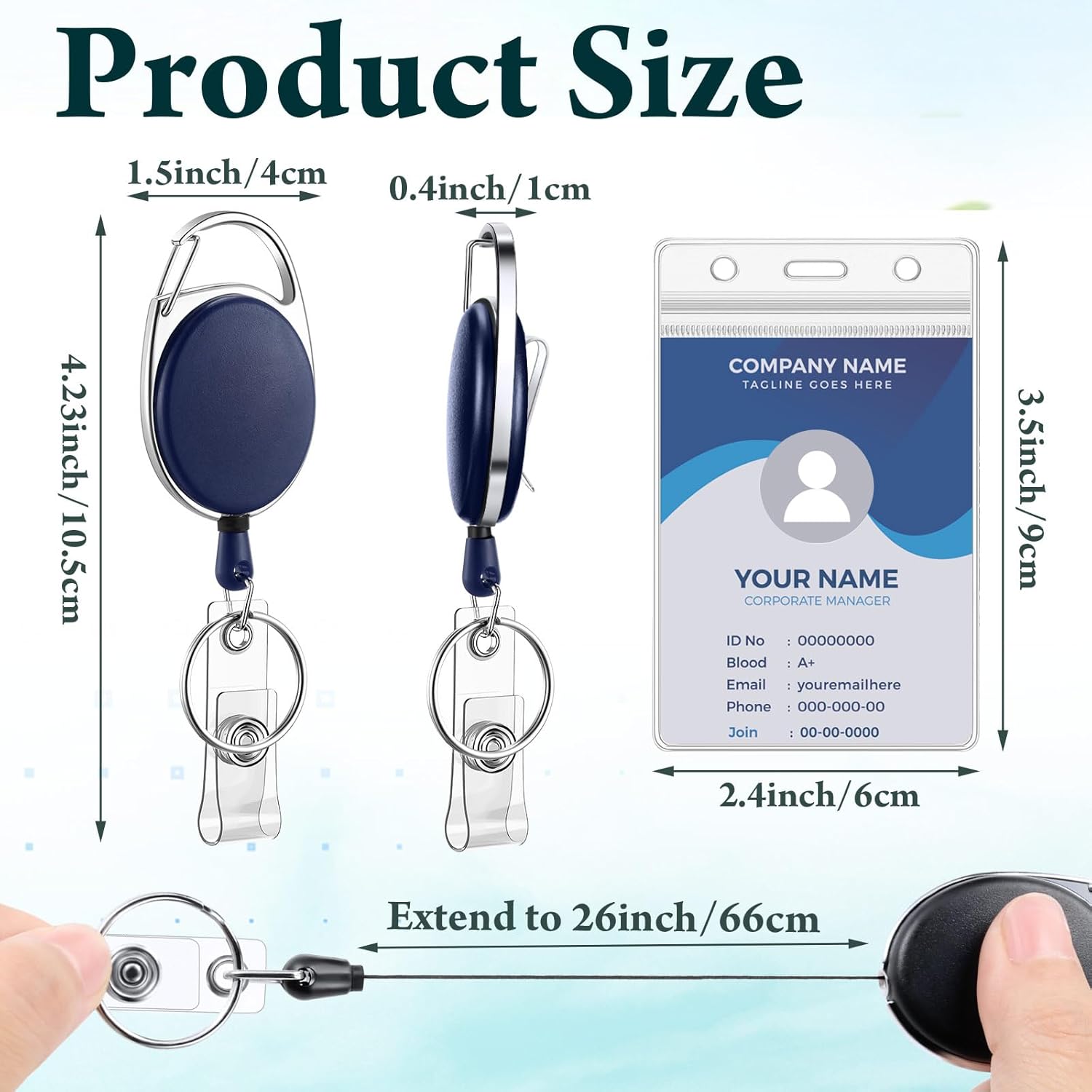 - Suitable Size: the retractable badge clip measures 4.23 x 1.5 inches/ 10.5 x 4 cm and is designed with retractable cord that extends up to 27.6 inches/ 70 cm long, easy to enter and exit various places; ID badge holder is 3.54 x 2.36 inches, which helps avoid dust getting in