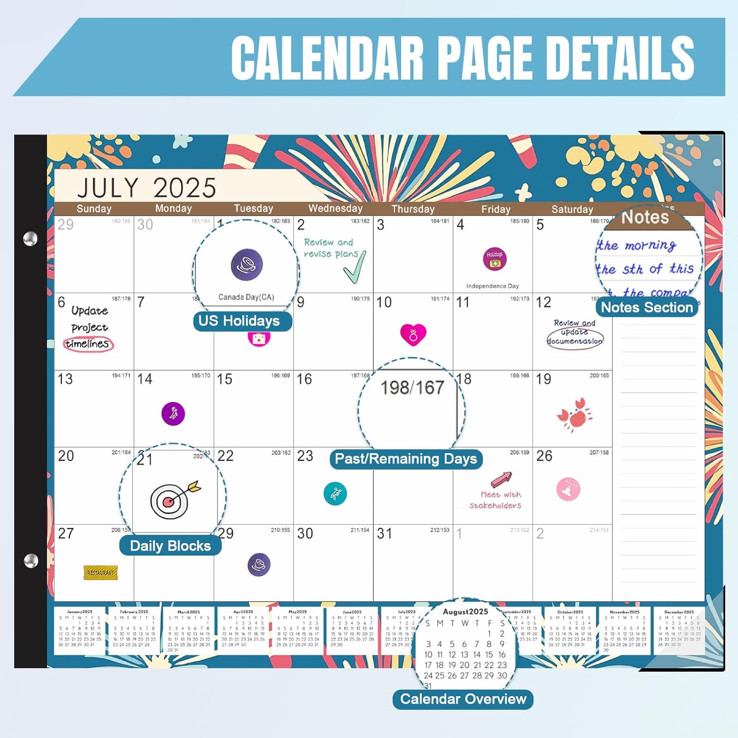 - ✨【Large Calendar & 6 Personalized Stickers】Larger,logical daily blocks provide you with plenty of space to organize your busy life,Clearly display important events such as appointments,deadlines,birthdays,and US holidays on each page.Comes with 6 planning stickers to make your schedule more personalized.