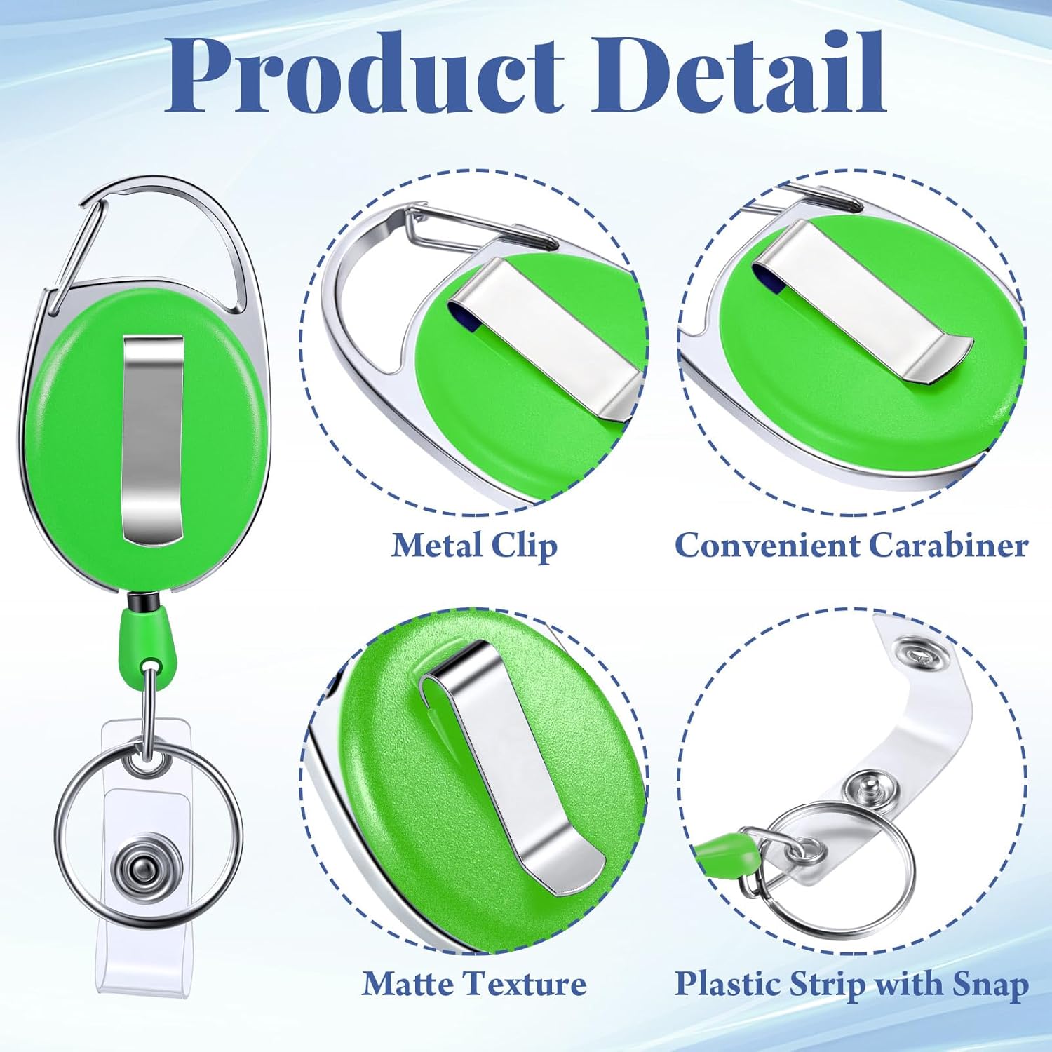 - Durable Material: the badge reel is chromed metal housing with quality plastic covers, matte texture plastic round reel case and fiber cord was made of wear resistant polyester material that is compact and sturdy, retraction force up to 4 oz/ 113 g