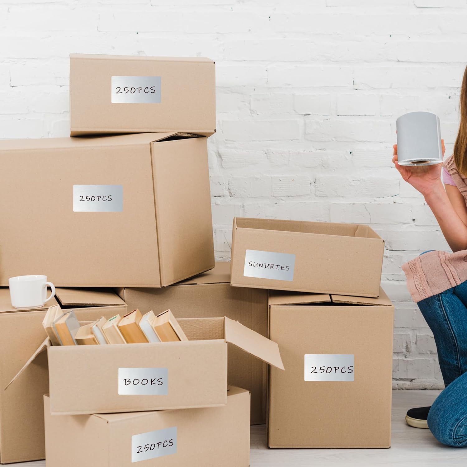 3 x 5 Inch 250Pcs Rectangle Color Coding Stickers,Strong Adhesion Easy to Write Label for Moving,Box Organization,Inventory,Business,Silver