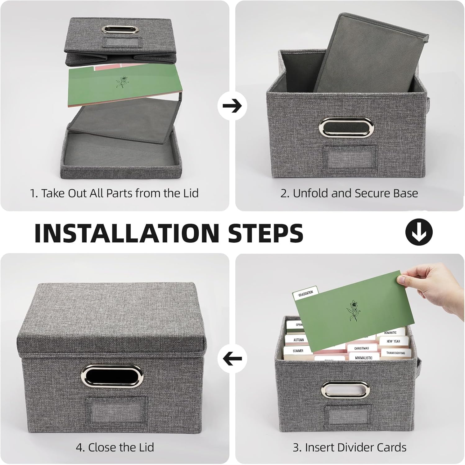 - Foldable Design: Greeting cards assortment box collapsible card storage box saves space when not in use, making it ideal for home and travel. When needed, it easily unfolds, and the handles on both sides make it convenient to carry and move