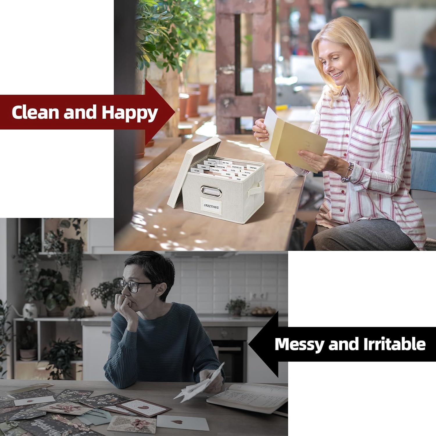 - Multifunctional Box: Beyond greeting cards, a card organizer box with dividers can organize vinyl records, stickers, envelopes, recipes, photos, bills, and memorabilia. Keep your space tidy while adding refined elegance to your decor