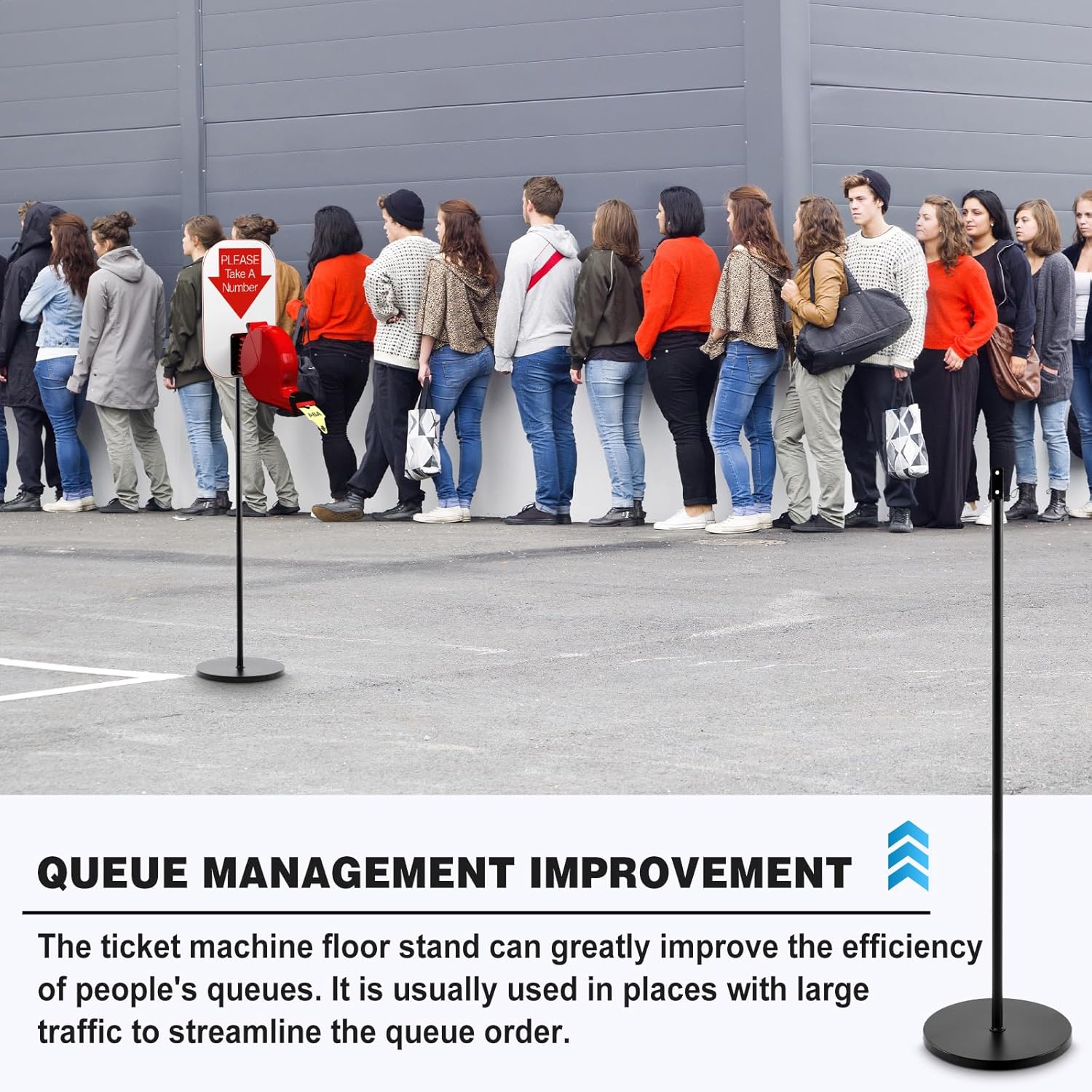 - Efficient to Use: this black floor stand is ideal for scenarios where queue management is required, standing at 52'' tall, conspicuous among the crowd, allowing you effortlessly to pick up tickets at busy counters, relax while waiting in line without having to worry about missing their turn, ensuring quick and efficient transactions