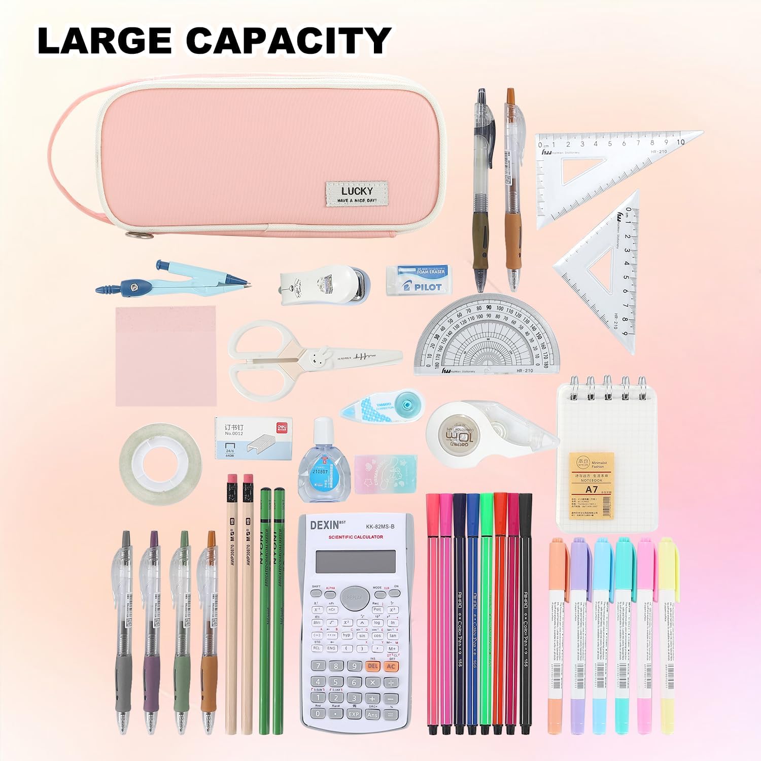 - Large Pencil Case - The dimensions of this pencil case are 9.45 x 4.35 x 3.15 inches, it can hold up to 70-90 pens/pencils, 20cm rulers, erasers, calculators, scissors, and other learning tools.