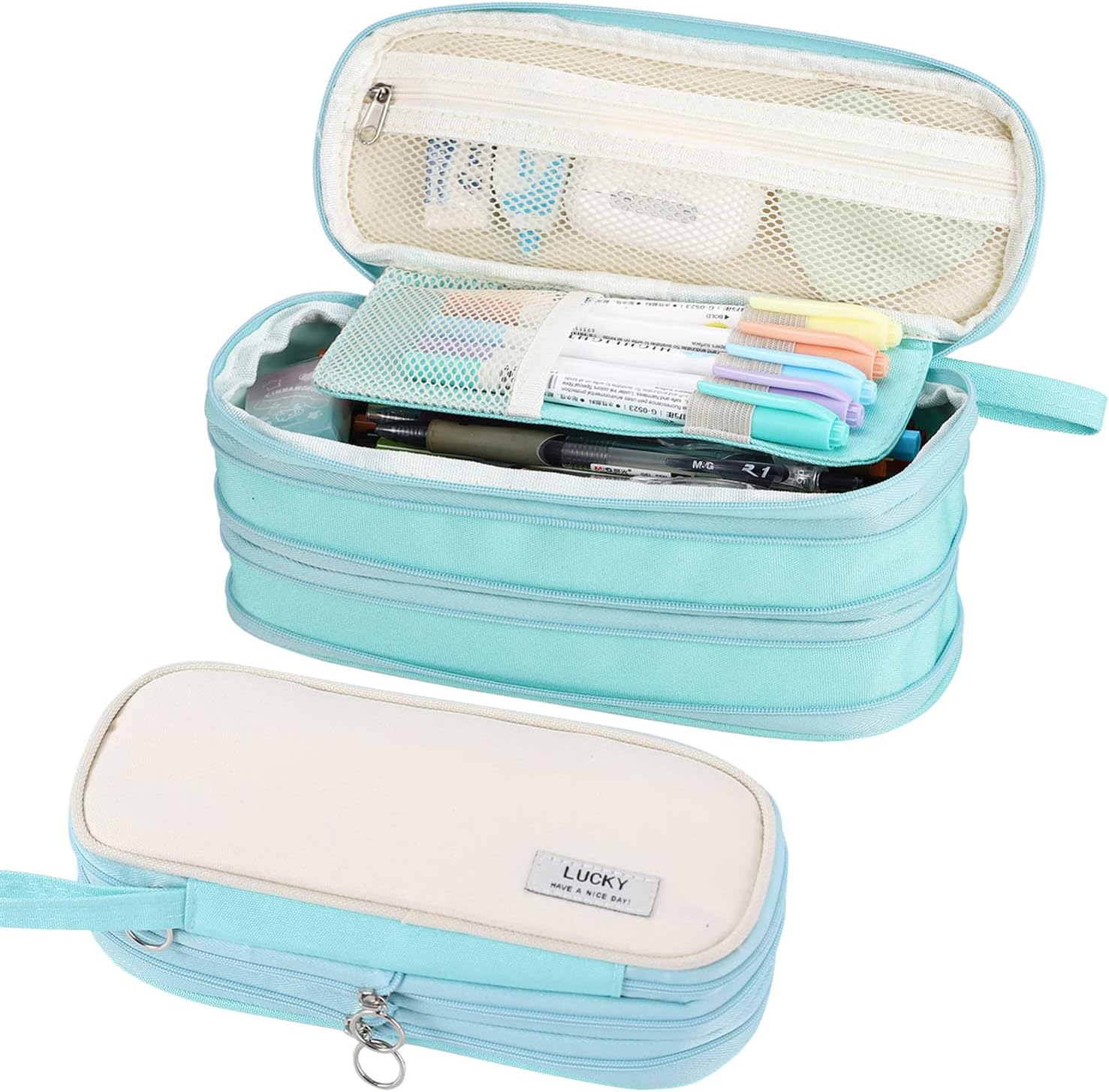 Big Pencil Case Zipper Pencil Pouch Organizer Large Capacity Pen Bag with Handle Portable for Girls Kids Adults Gift Pen Case for School Home Office Light-blue