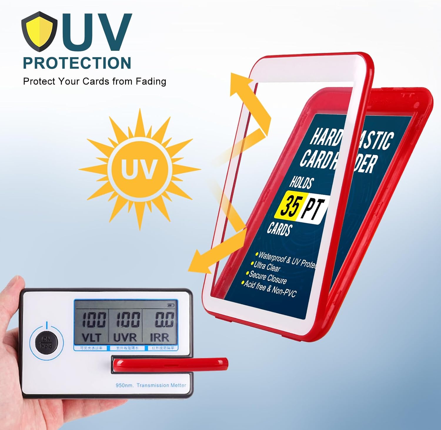 - UV PROTECTION: Our 35pt hard plastic card holder is made from UV protection materials that can protect your cards from UV. You don't need to worry about your prized cards fading while you display and store them.