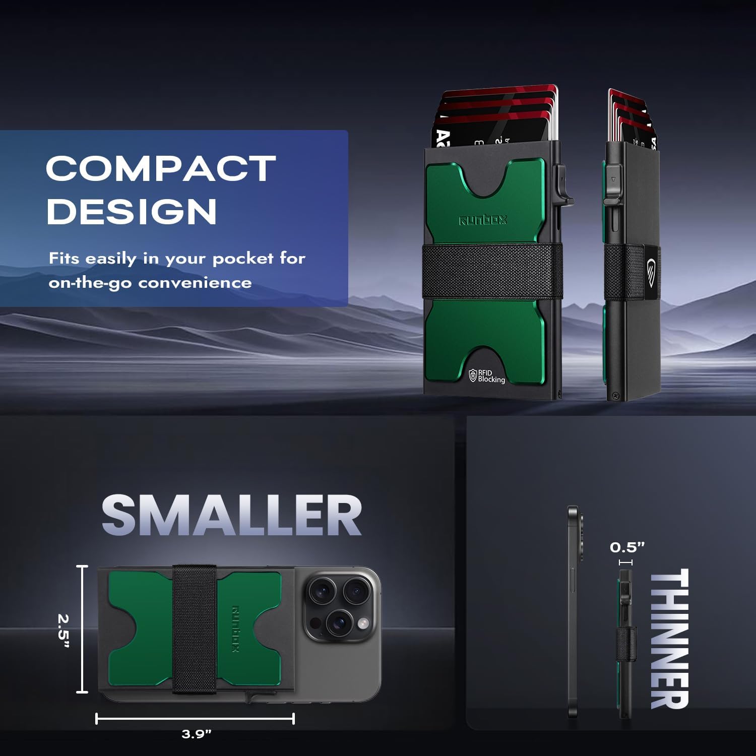 - SLIM WALLET FOR MEN with Ultra Thin & Lightweight Design: At just 0.5" thick and 2.6oz, this minimalist tactical wallet slips seamlessly into any pocket. Dimensions: 3.9"x2.5" – perfect for discrete everyday carry. The innovative expandable backplate adds storage without bulk, letting you ditch oversized wallets