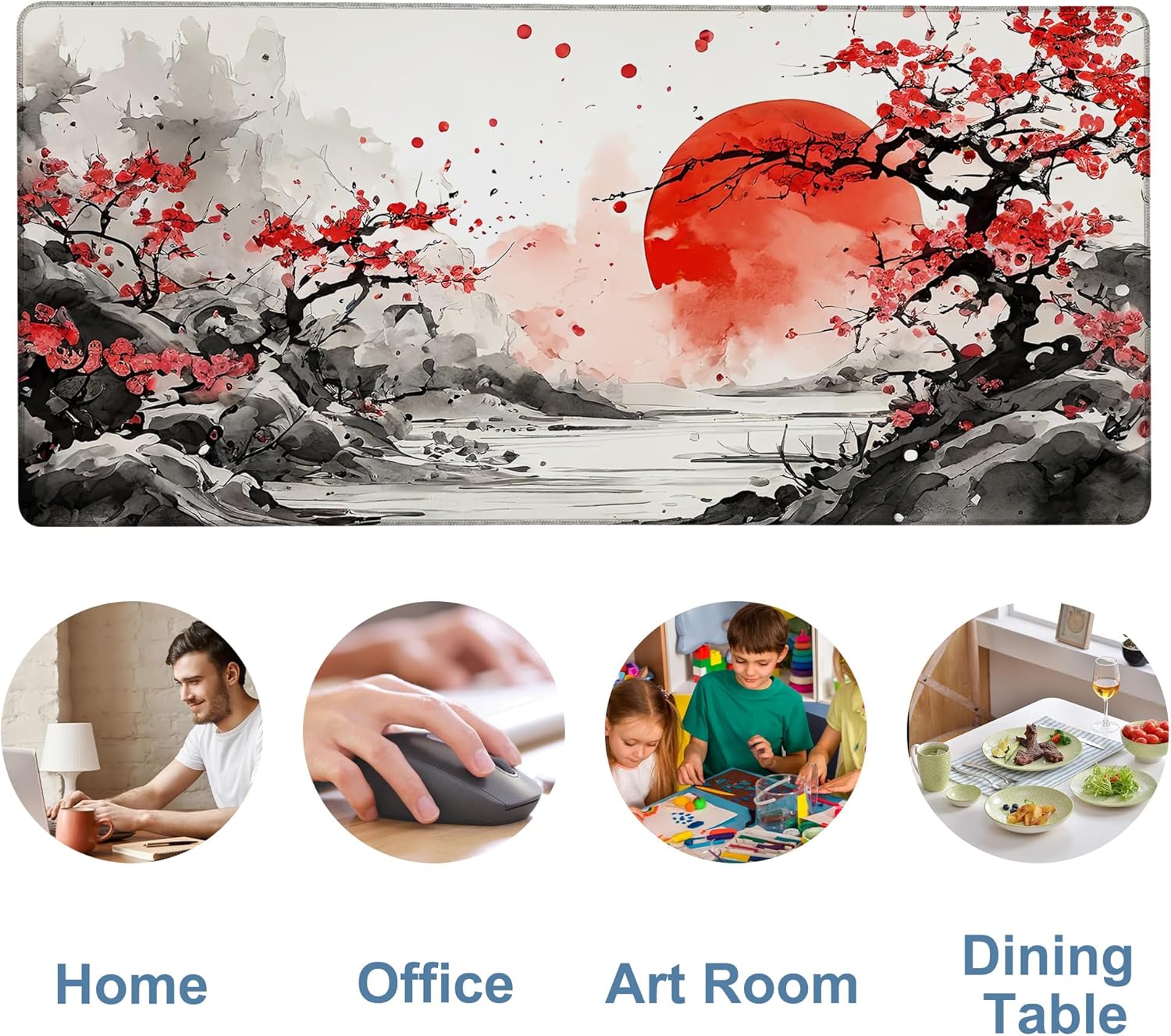 Large Mouse Pad Ink Painting Gaming Desk Pad Computer Keyboard Non-Slip Waterproof Mouse Mat with Rubber Base and Stitched Edges Entertainment Office Writing Desk Mat 35.4 x 15.7 Inches