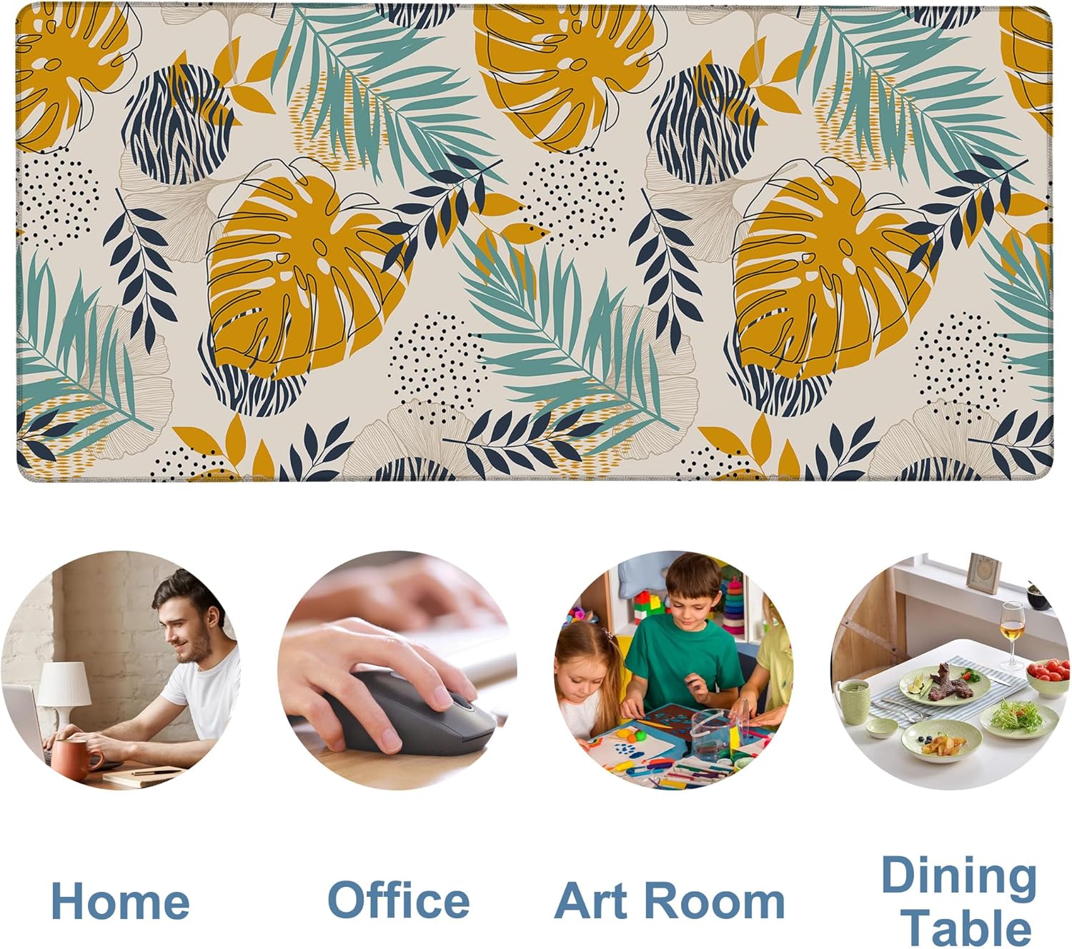Large Mouse Pad Palm Leaves Gaming Desk Pad Computer Keyboard Non-Slip Waterproof Mouse Mat with Rubber Base and Stitched Edges Entertainment Office Writing Desk Mat 35.4 x 15.7 Inches