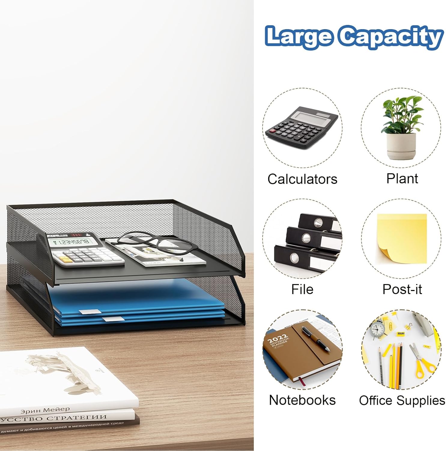 - 【Durable & Sturdy】The 2 tier desk organizer is made of high-density metal mesh, and thick iron tray to avoid deformation. Reasonable structure, strong and durable paper tray.