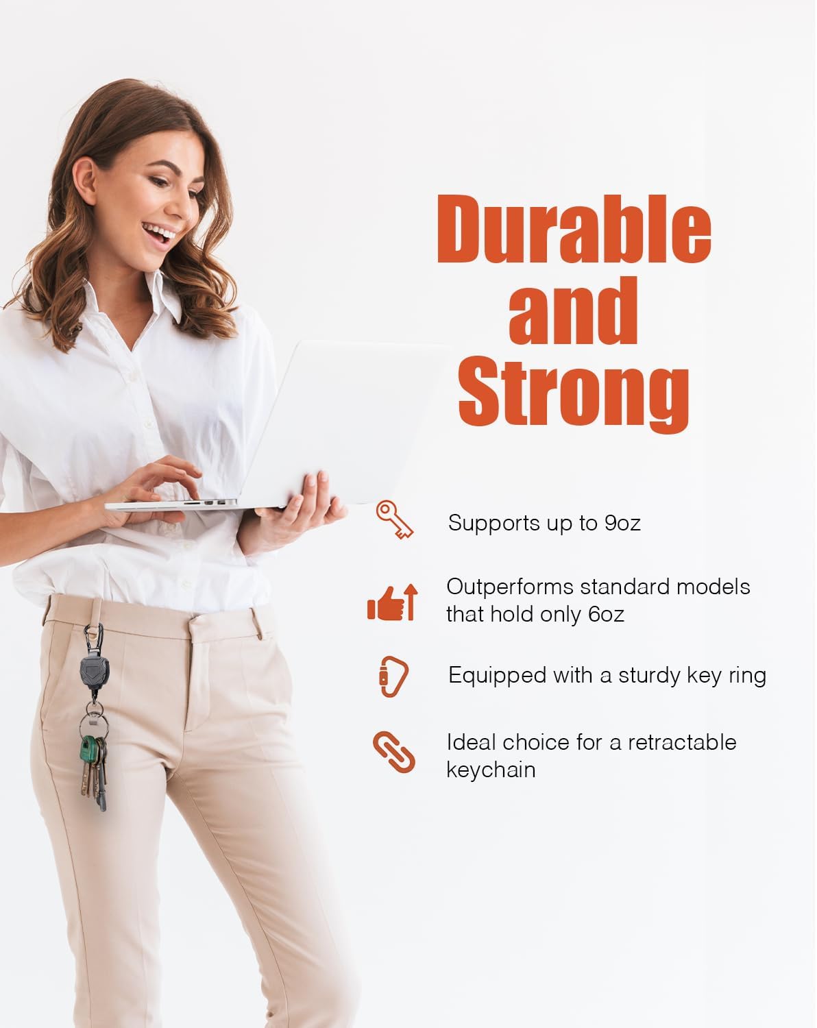 - Durable Retractable Clip – Built with a 0.039" stainless steel cord, our badge reel provides a retraction force of up to 9.0oz, ensuring it securely holds multiple keys without sagging. The strong spring mechanism offers smooth and reliable extension and retraction.