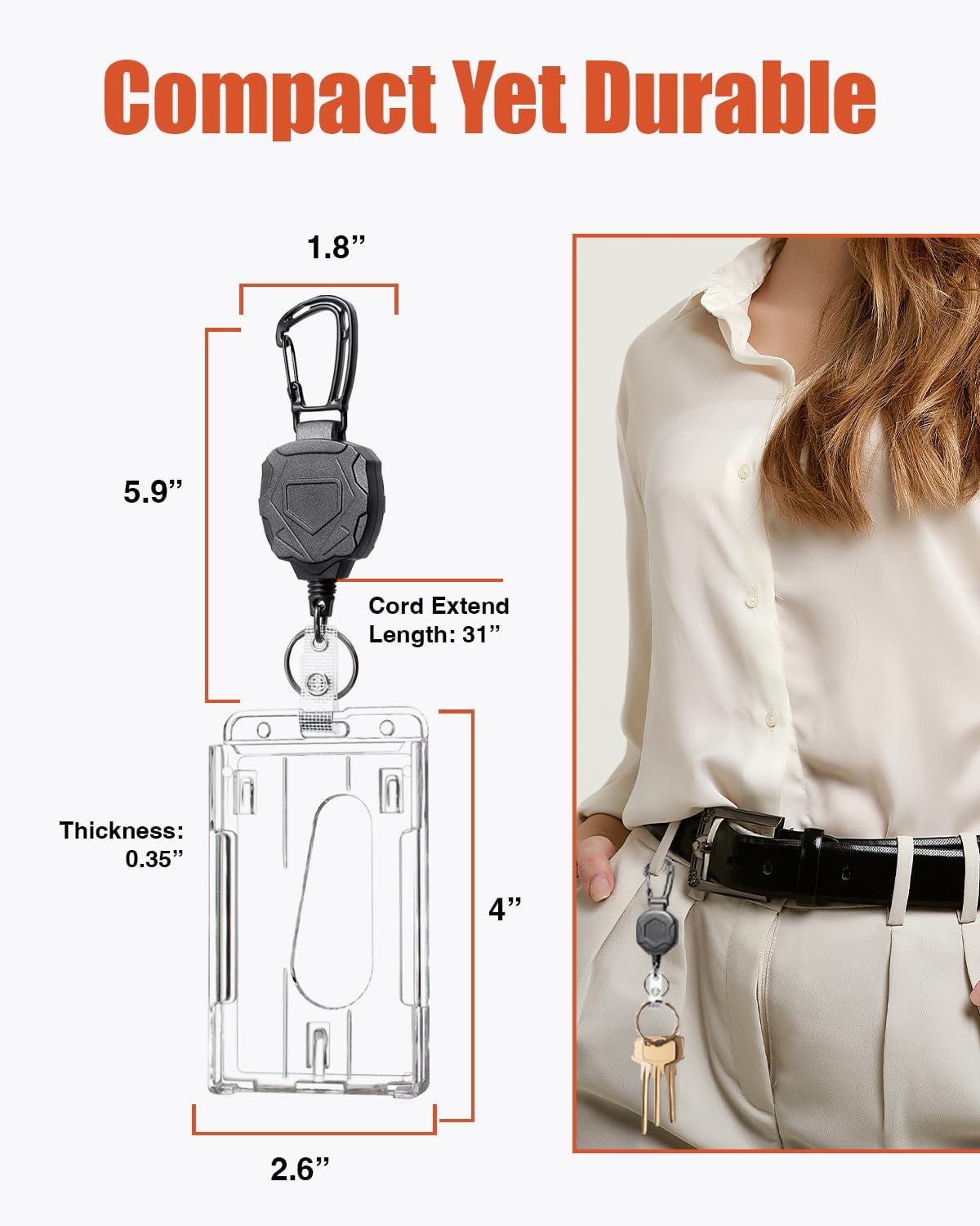 - Versatile and Easy to Use – Featuring a high-grade 32-inch coated metal cable, our retractable badge holder reduces friction for smooth operation. It accommodates not just keys and ID cards but also small tools like flashlights, bottle openers, and multi-tools, making it ideal for professionals in various industries, including healthcare, security, and hospitality.