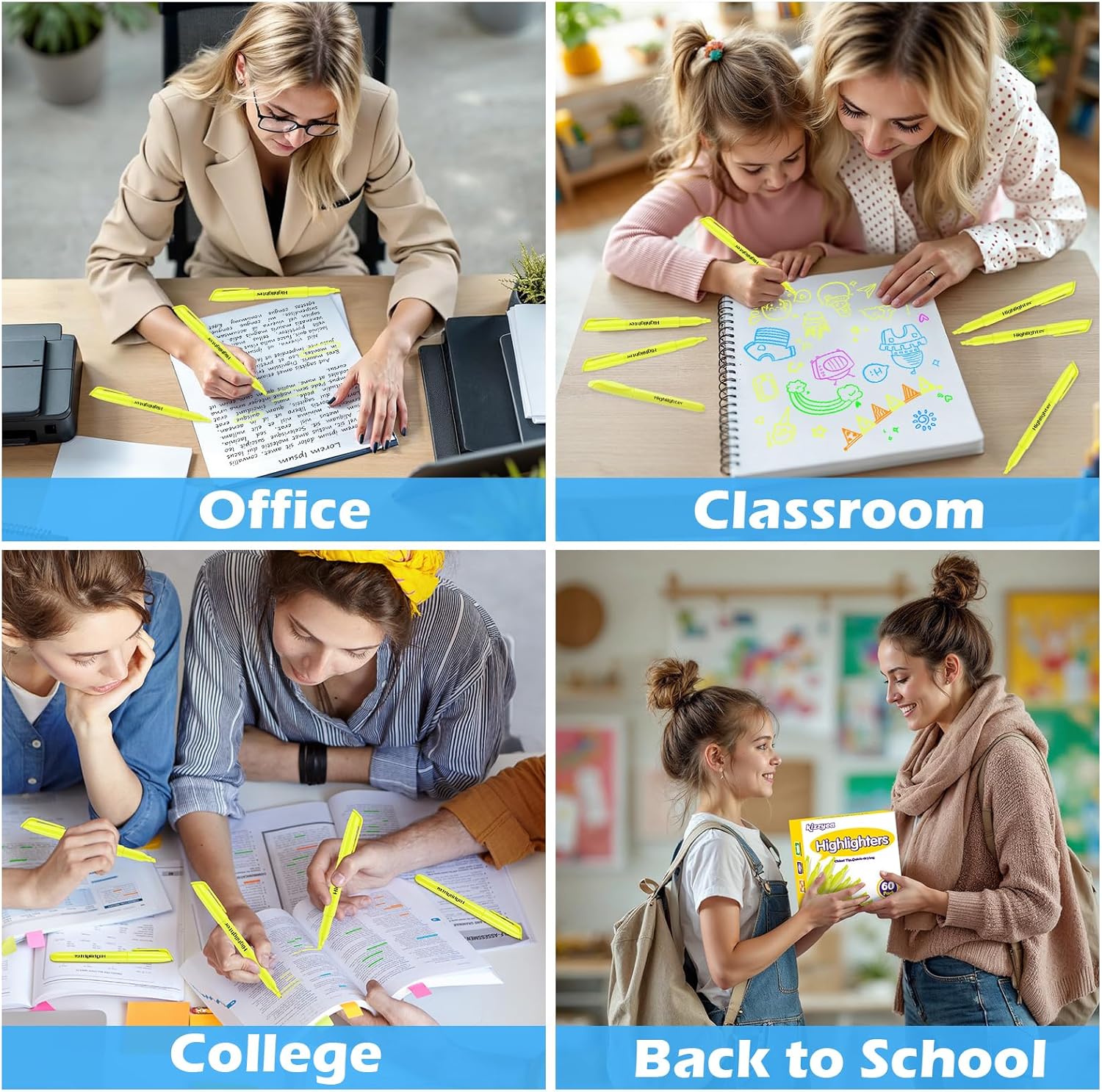 - Value Yellow Highlighters: This bulk pack includes 60 count conspicuous yellow highlighters, which is the most attractive color to the crowd. Features a versatile chisel tip highlighter, perfect for highlighting text, underlining key points, and writing notes. The bright yellow is very convenient for classifying various marks and meeting all kinds of classification needs, allowing you to mark easily. Ideal for home, office, or classroom supplies.
