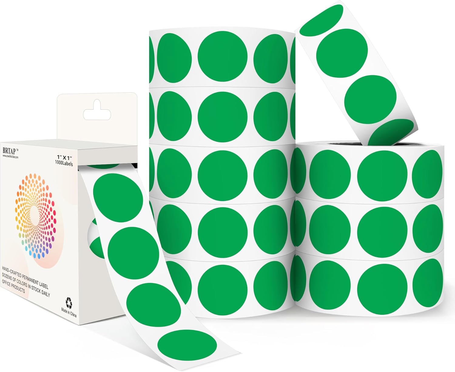 Green 1 Inch Round Color Coding Dot Labels, 10 Rolls 10000 Dot Stickers in Dispenser Box - Permanent Adhesion, Vibrant Colors, Highly Visible