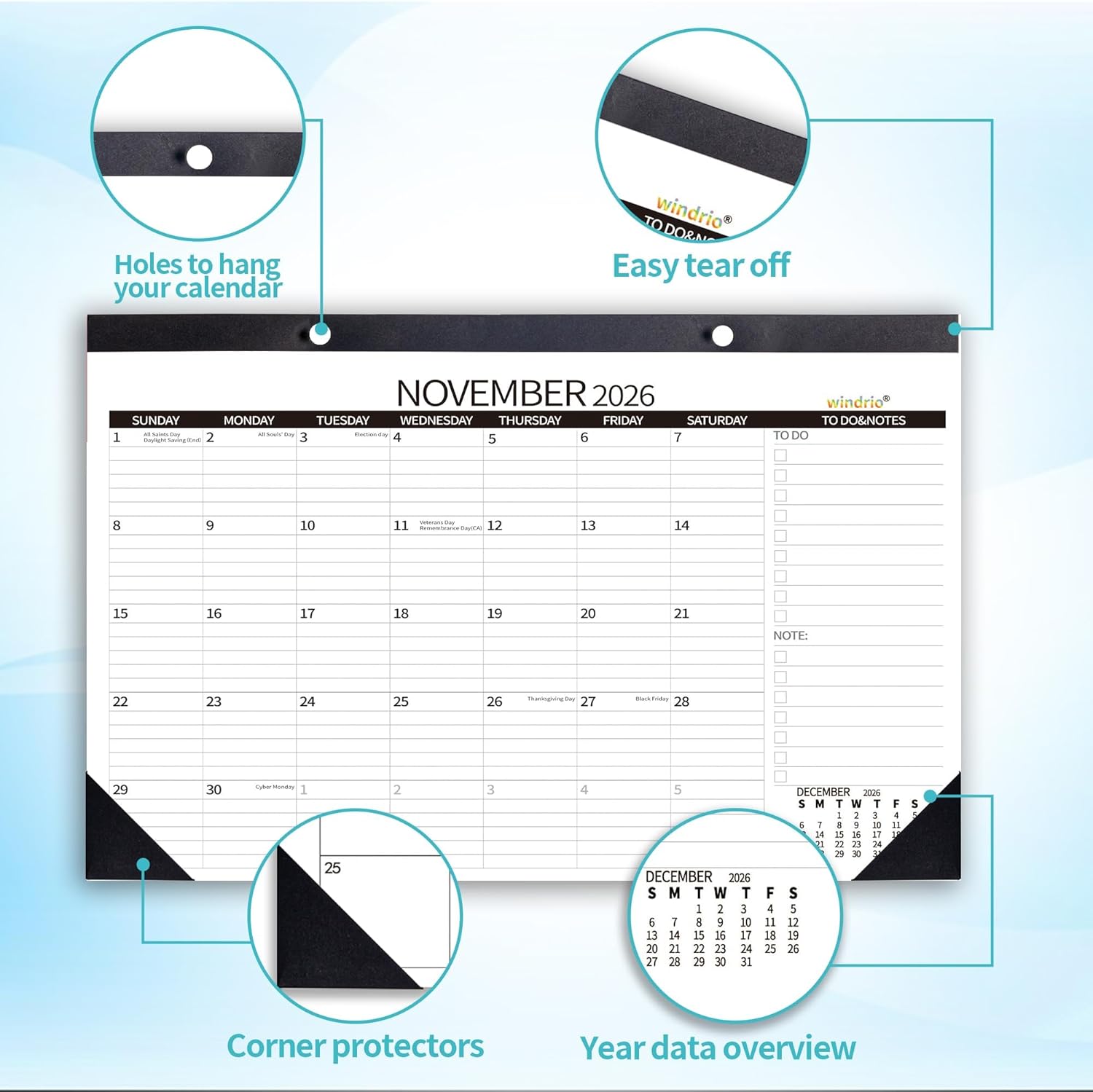• Effortless Organization and Abundant Writing Space: Effortlessly organize your schedule and never forget important details with our spacious 17" x 12" desk calendar, which provides ample writing space in generously sized daily grid blocks and dedicated monthly note columns for jotting down additional information, goals, or ideas while keeping your schedule neat and organized, complete with holidays and important dates for your convenience.