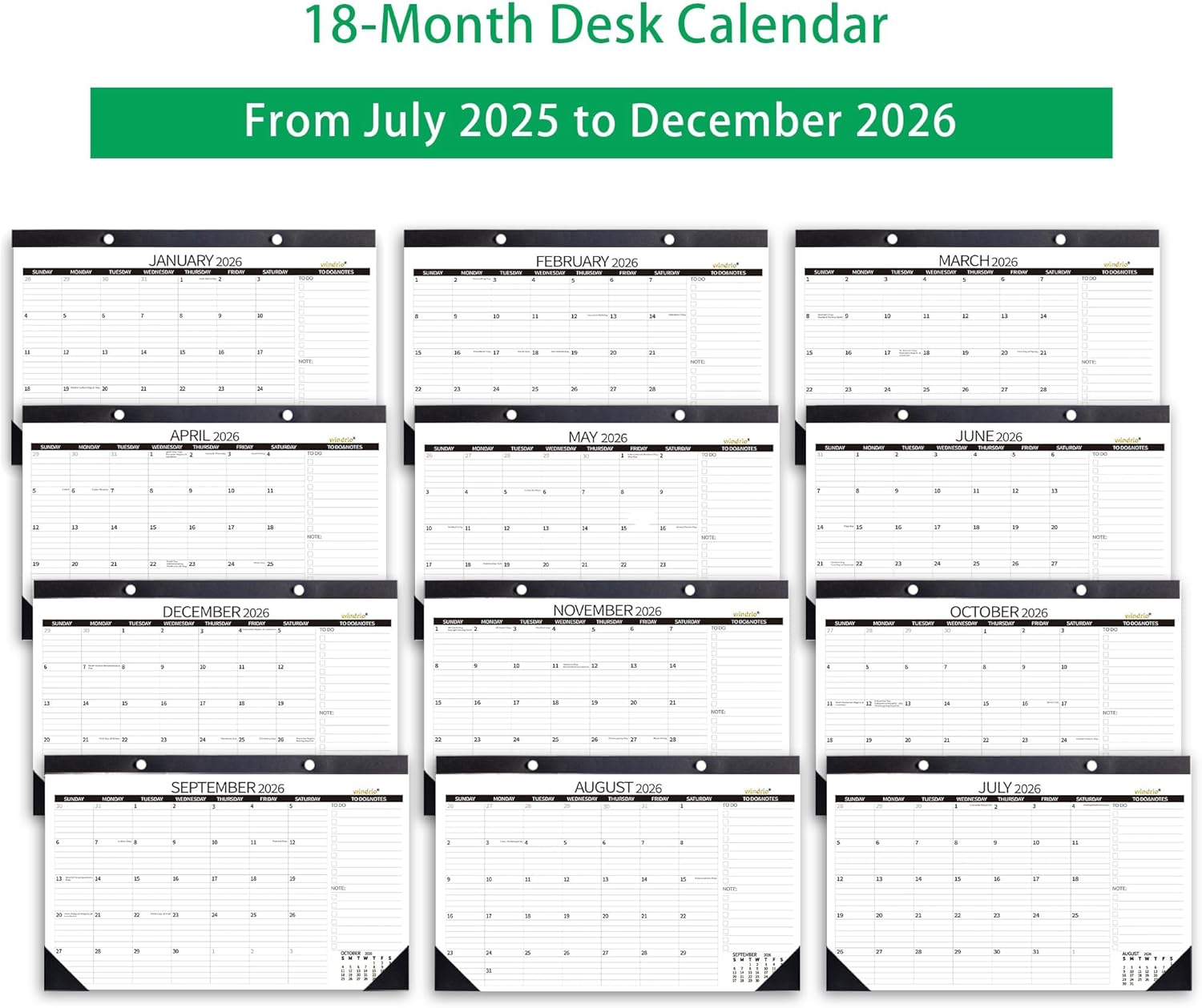 Desk Calendar 2026 Wall Calendars, July 2025 - December 2026 Monthly Planner Paper Office Desktop 17"X 12", 18-Months, Planning and Organizing Home, School, Office, Holiday, Vacation