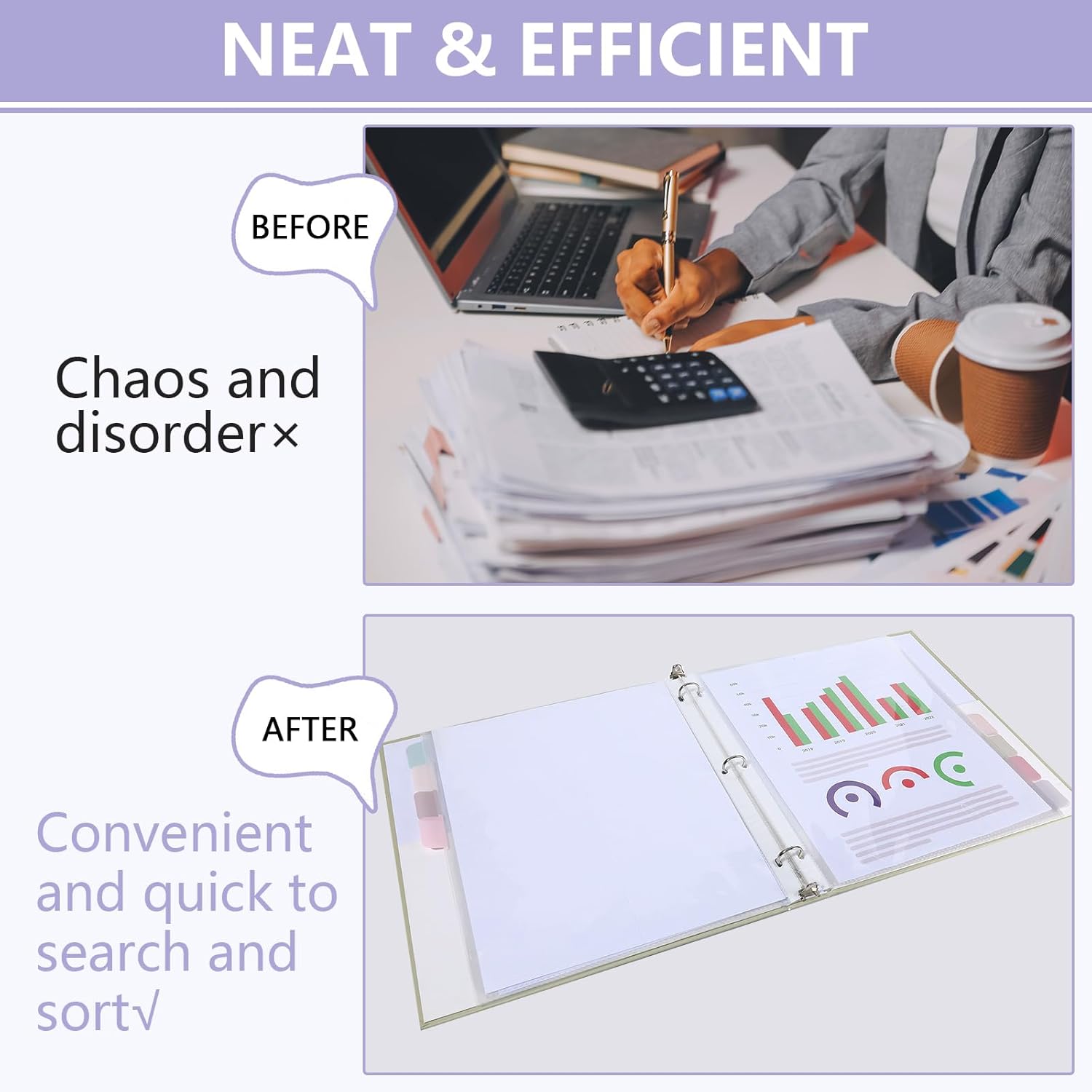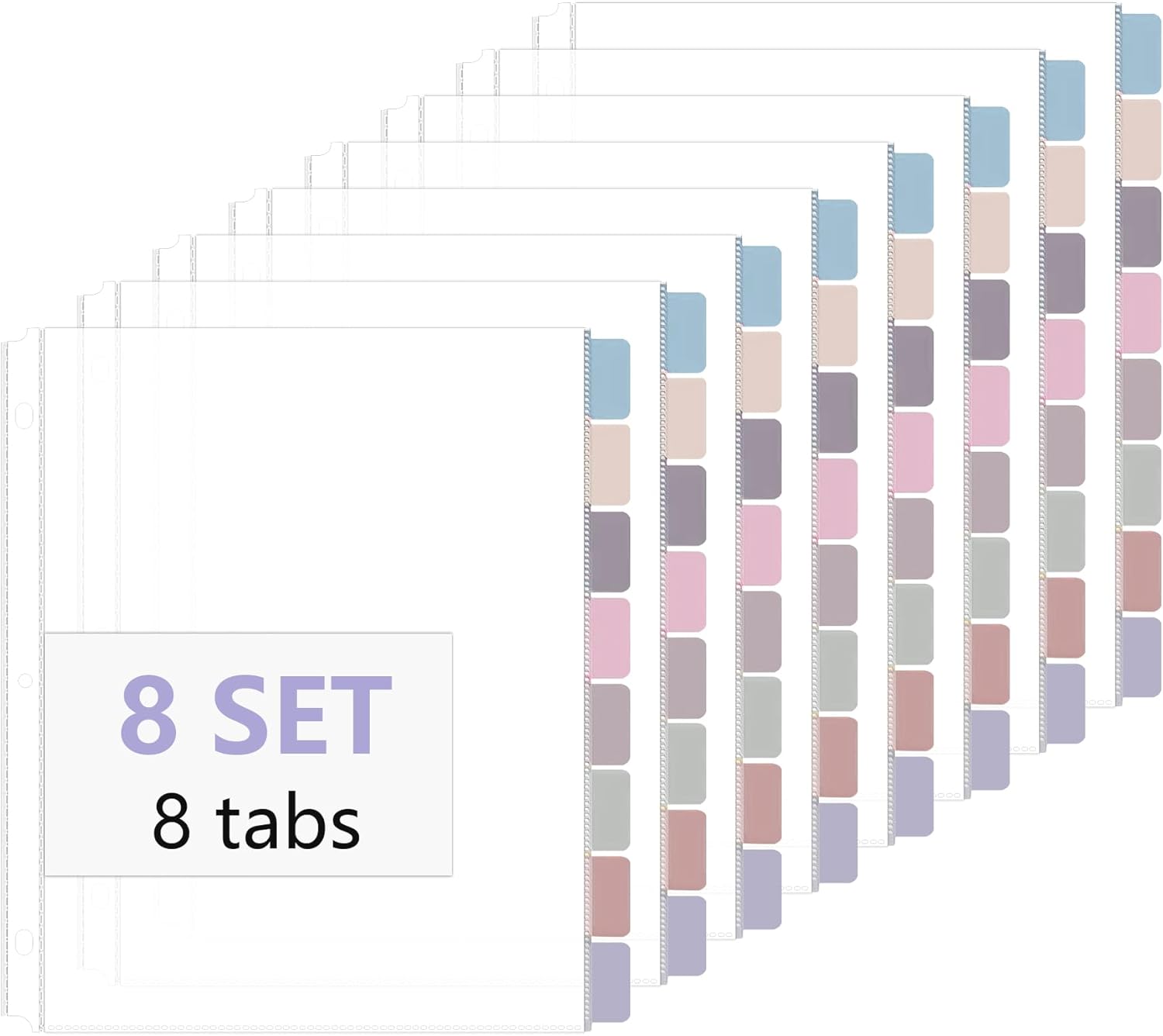 - Colorful index tabs for easy organization: Each set comes with 8 different colored index tabs, allowing you to categorize and quickly locate sections within your documents. The transparent page protectors provide clear visibility, ensuring you can find information at a glance.