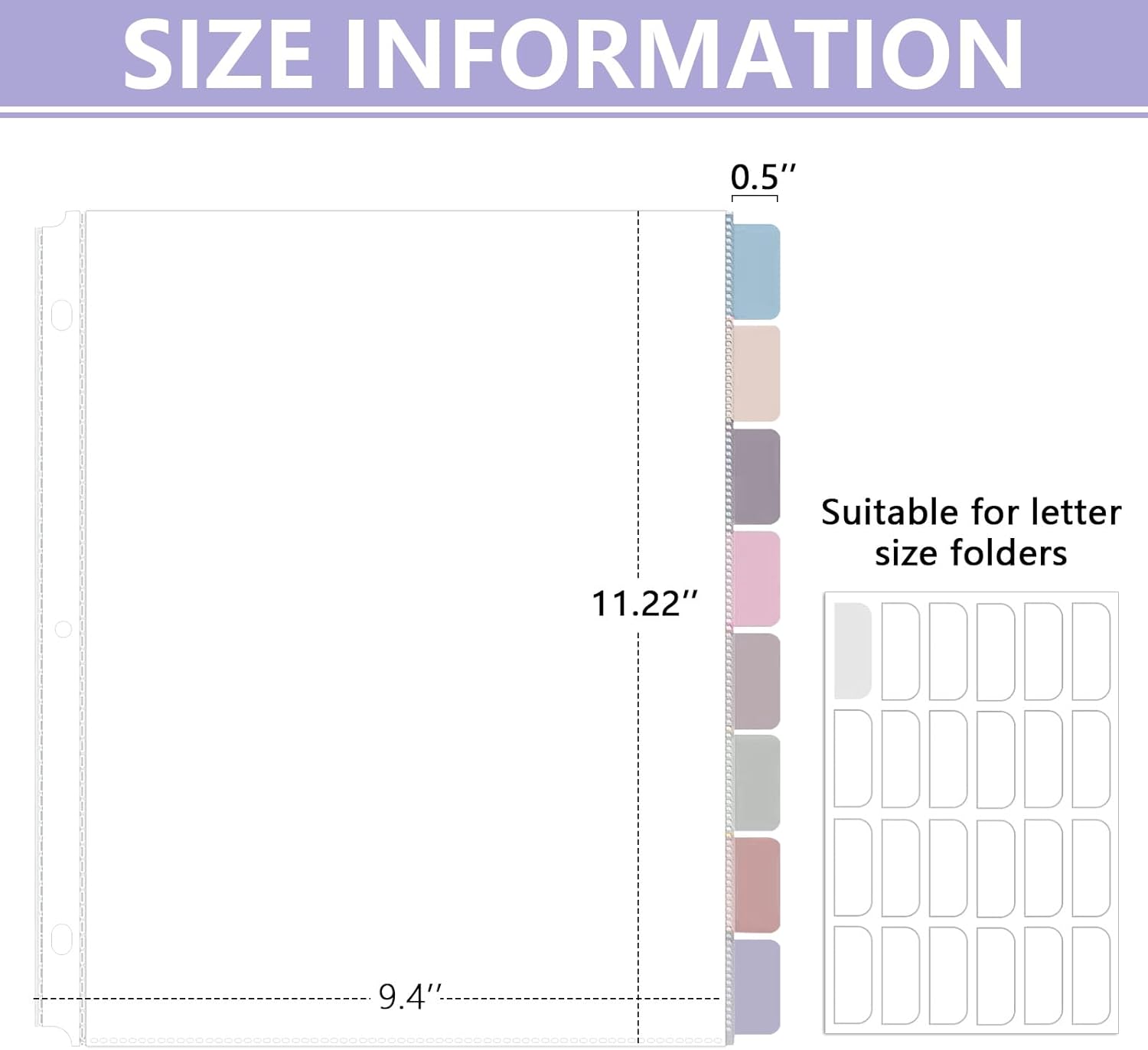 - Suitable size for standard documents: Measuring approximately 11.22 x 9.4 inches (28.5 x 32.88 cm), each tabbed divider is specifically designed to accommodate standard 8.5 x 11 inch letter-sized paper. This size is compatible with most 3-ring binders, allowing seamless integration into your existing organization system. Ideal for organizing reports, manuals, school assignments, and more.