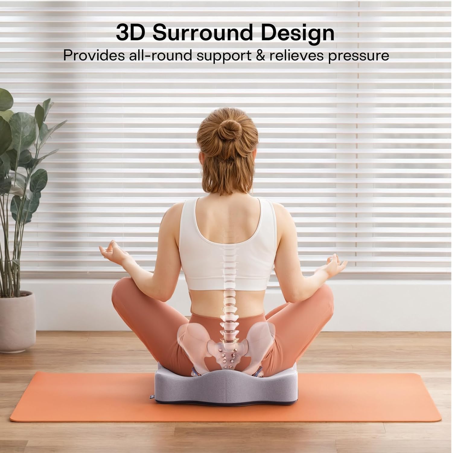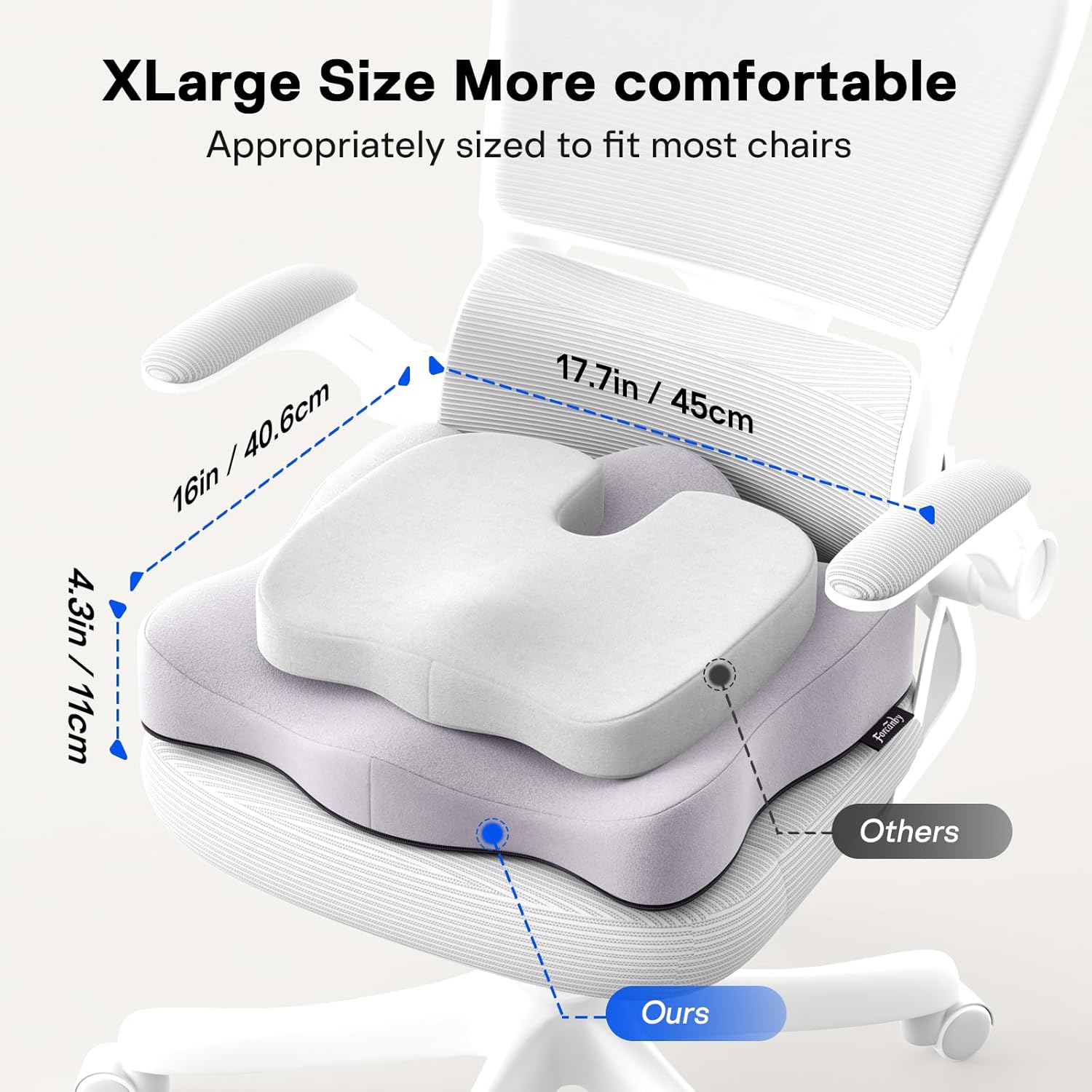 - 【Ergonomic Seat Cushion for Office Chair】Designed with orthopedic contours, this chair cushion for back pain provides full hip support and all-day sitting comfort. Perfect for office chair seat cushions, gaming chair cushions, or airplane seat cushions, it targets sciatica, tailbone pain, and butt cushion needs caused by prolonged sitting.