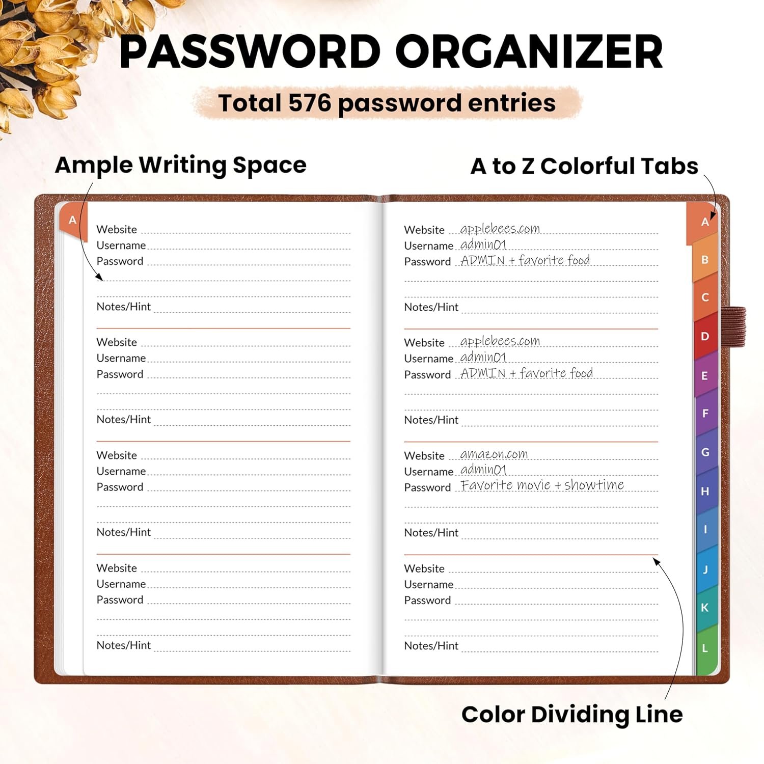 - EASY TO USE: The password keeper book has colorful alphabetical print indexes. You can quickly locate the password you need and never worry about forgetting your password or losing time.