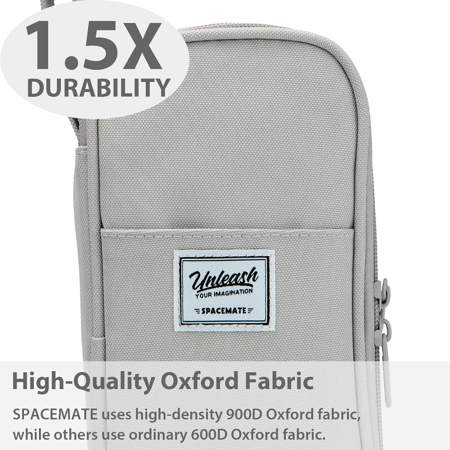 - SPACEMATE's pencil pouch is made of a high-density, hardy, and wear-resistant 900D oxford material, which is 50% thicker than other's products. This pouch is also popular among SPACEMATE employees' family members